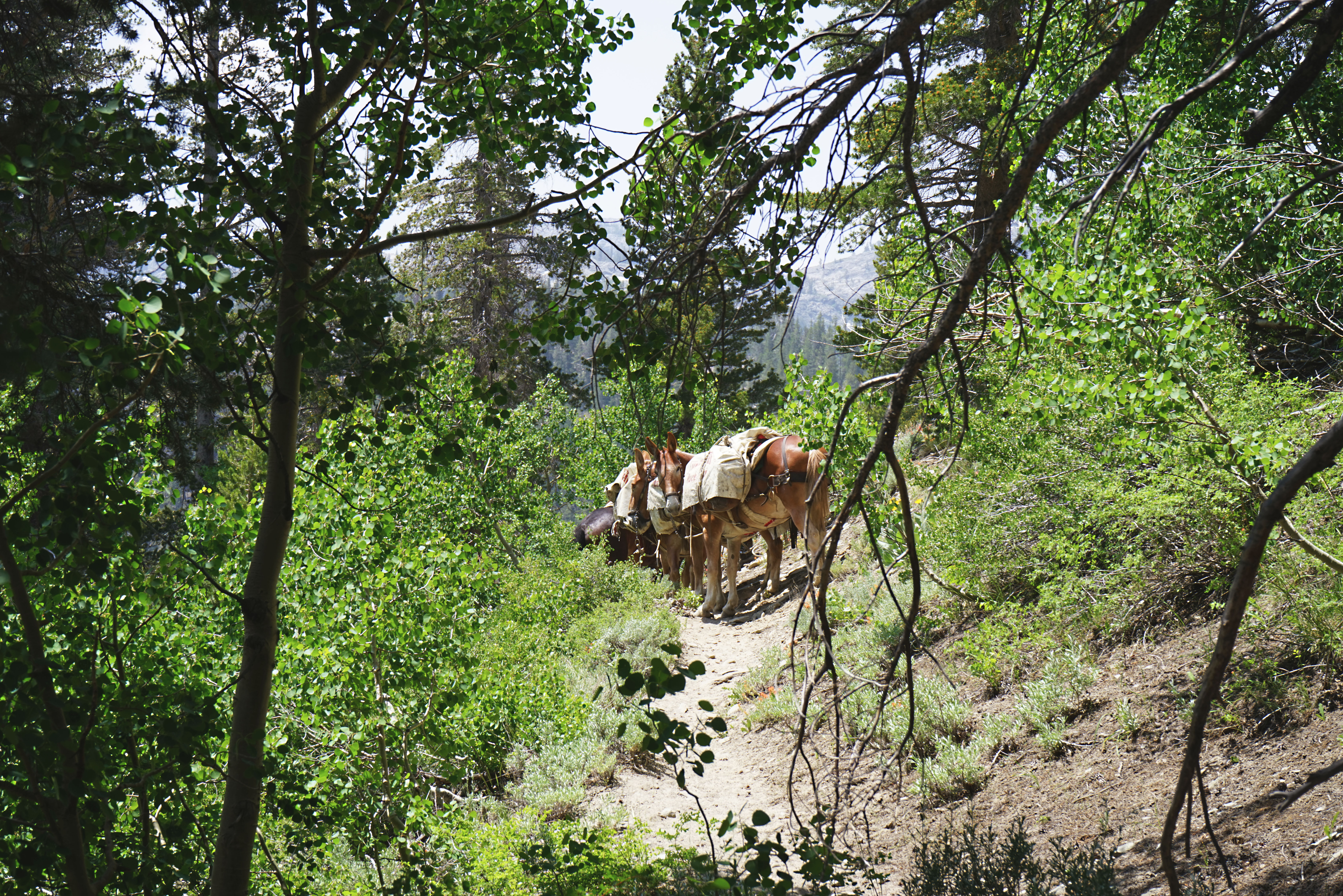 I got caught behind this mule train for a few miles. At one point, one of them kicked a bag, so I had to stop and wait for them to sort that out. While this was the only time I would get stuck behind mules, they had left their mark (or their poop, rather) all over the trail I would walk on for the next seven days.