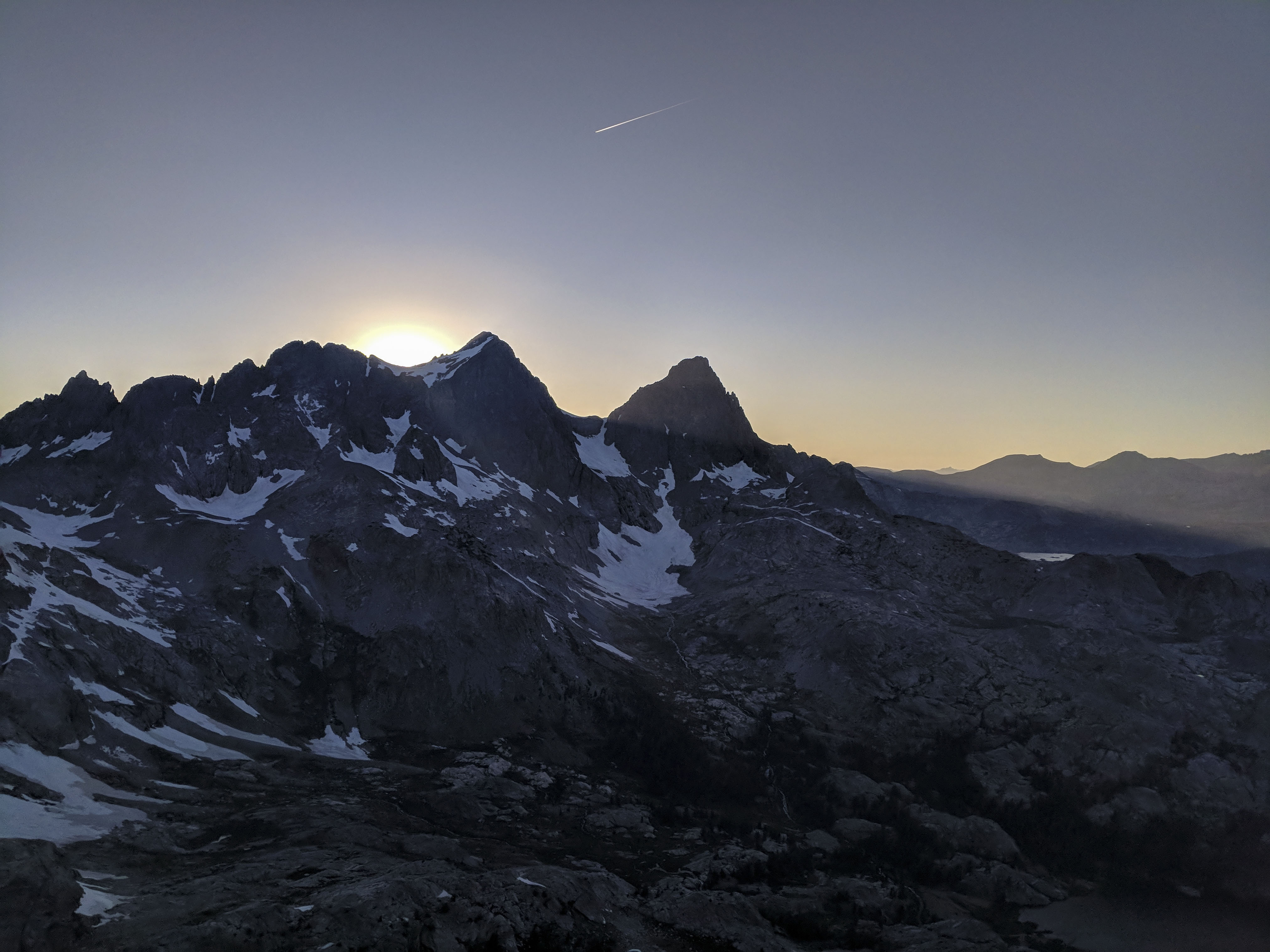 The views from the summit were phenomenal, and our choice to summit late (about 7 o’clock) treated us to a fantastic sunset over the Minarets.