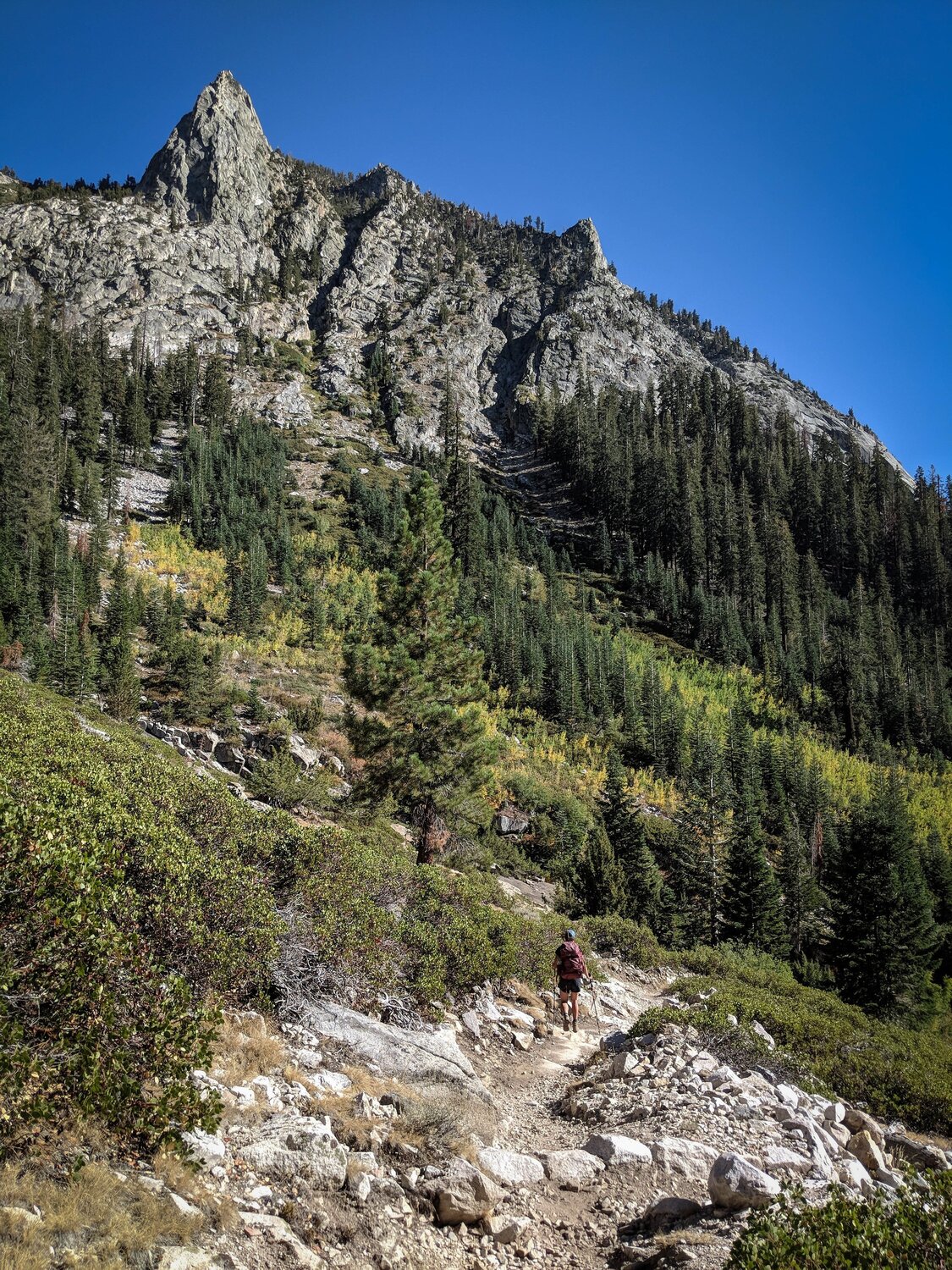 The trail above East Lake fades to nothing and frequently disappears beneath talus fans. It wasn’t difficult to follow, as it’s ascending a canyon to a lake, but beginner hikers might find it a bit adventurous.