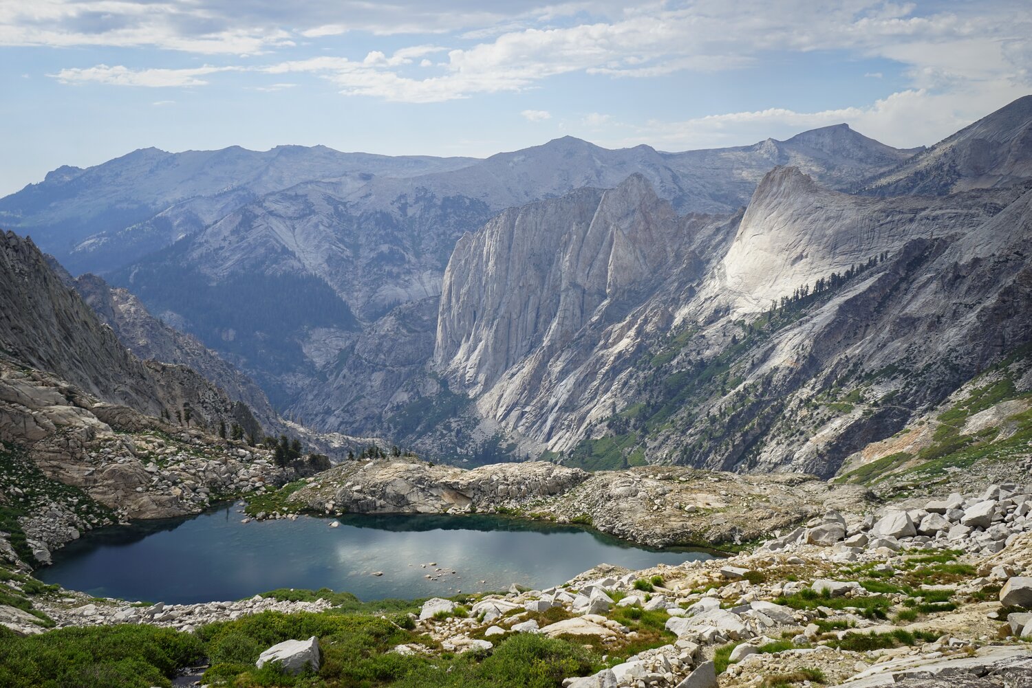 Lake 9839 and some of the impressive cliffs along Eagle Scout Creek.