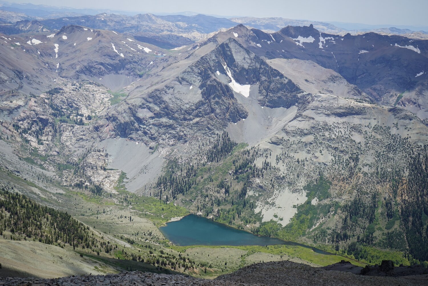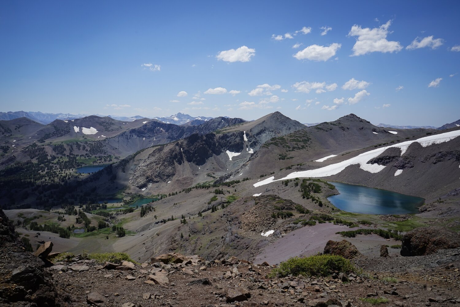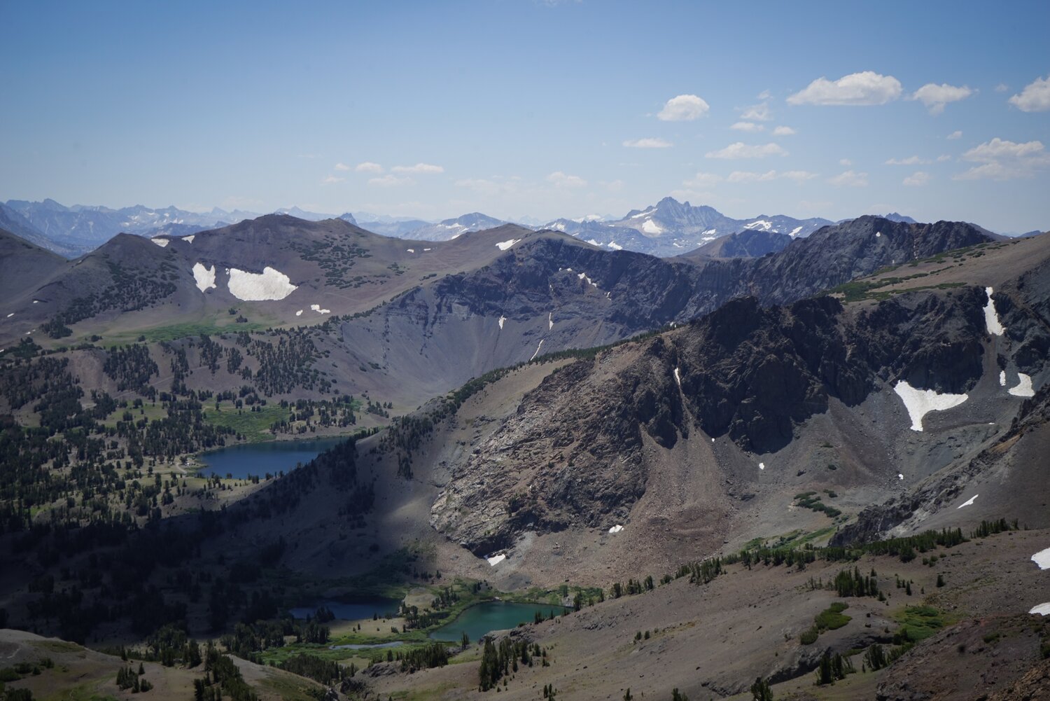 The view of Latopie Lake and Koenig and Leavitt Lakes below, with Tower Peak in the background.