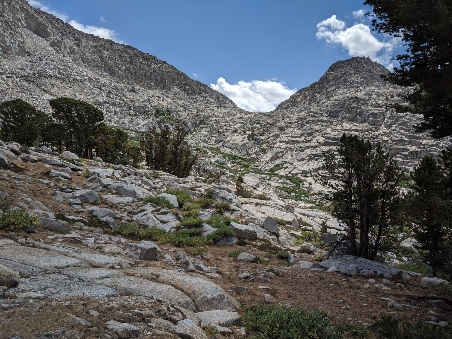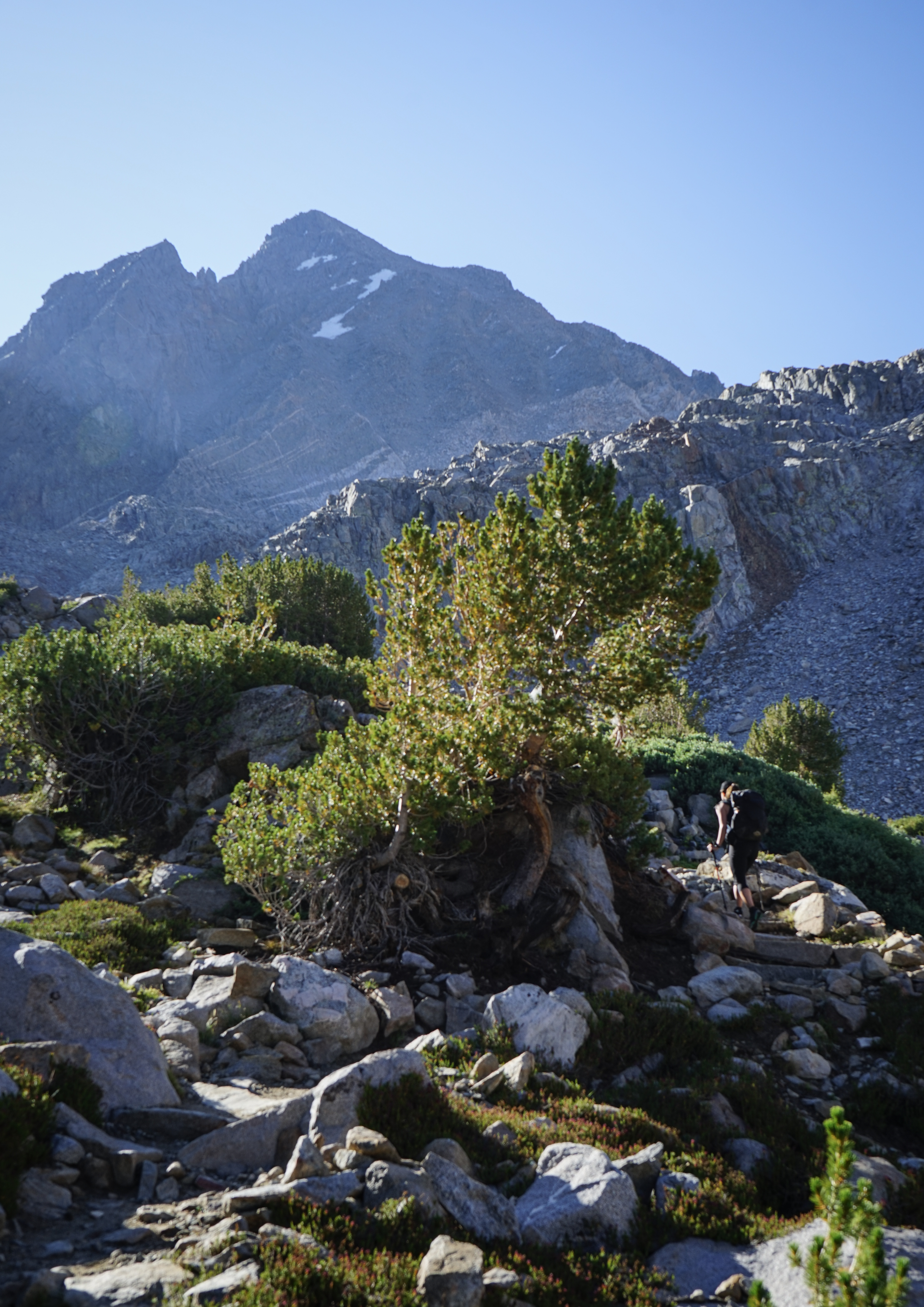 On our way down the Dusy Basin Trail, we ran into a lone hiker, Cameron, who was getting off the Sierra High Route to pick up a resupply. We chatted for a bit, quite impressed with his adventure.