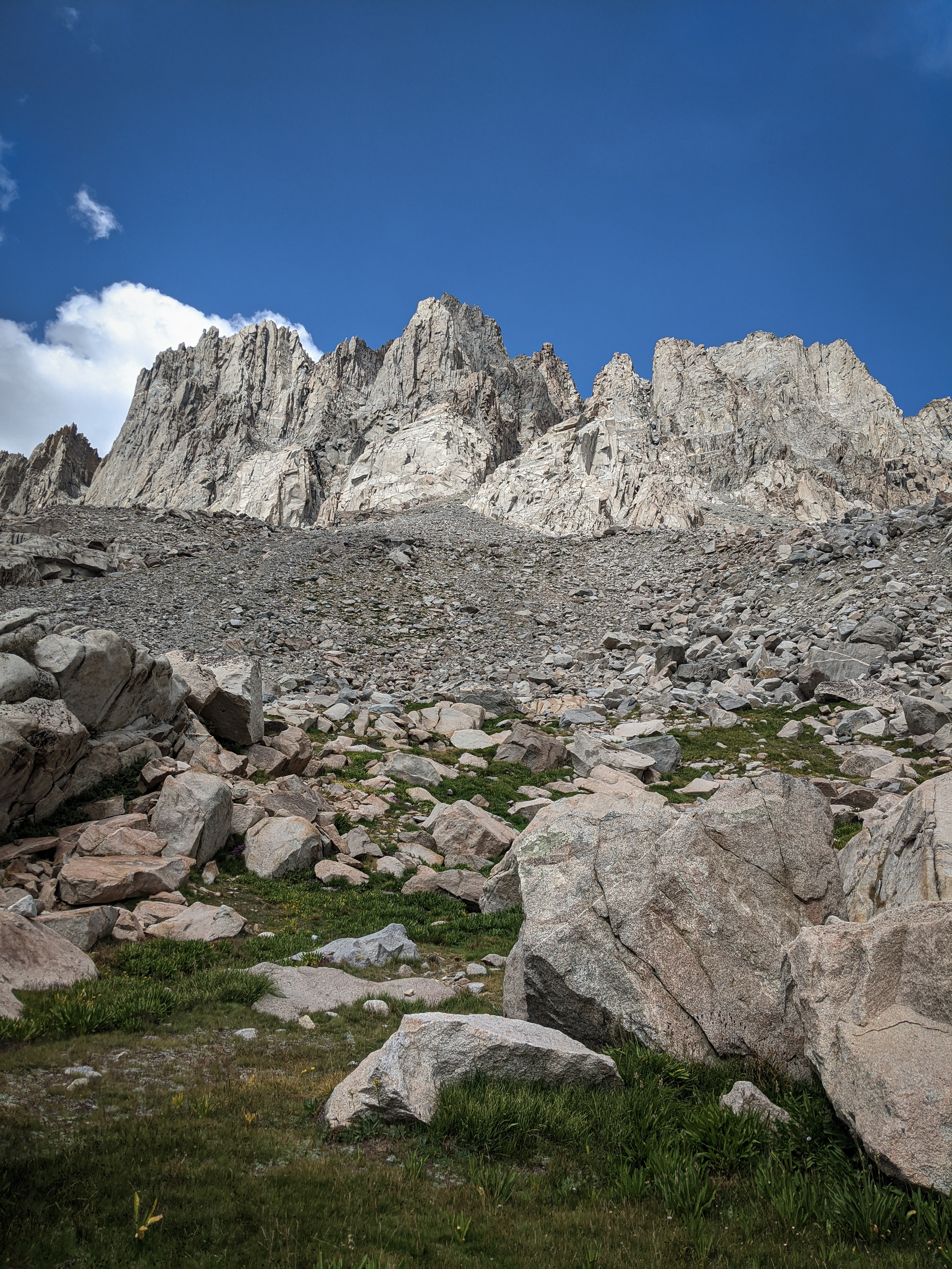 Descending Knapsack Pass was a tiny bit tricky, as described. We accidentally dropped too low and completely missed Lake 11468 and had to climb back up to Lake 11523.