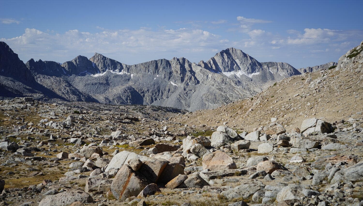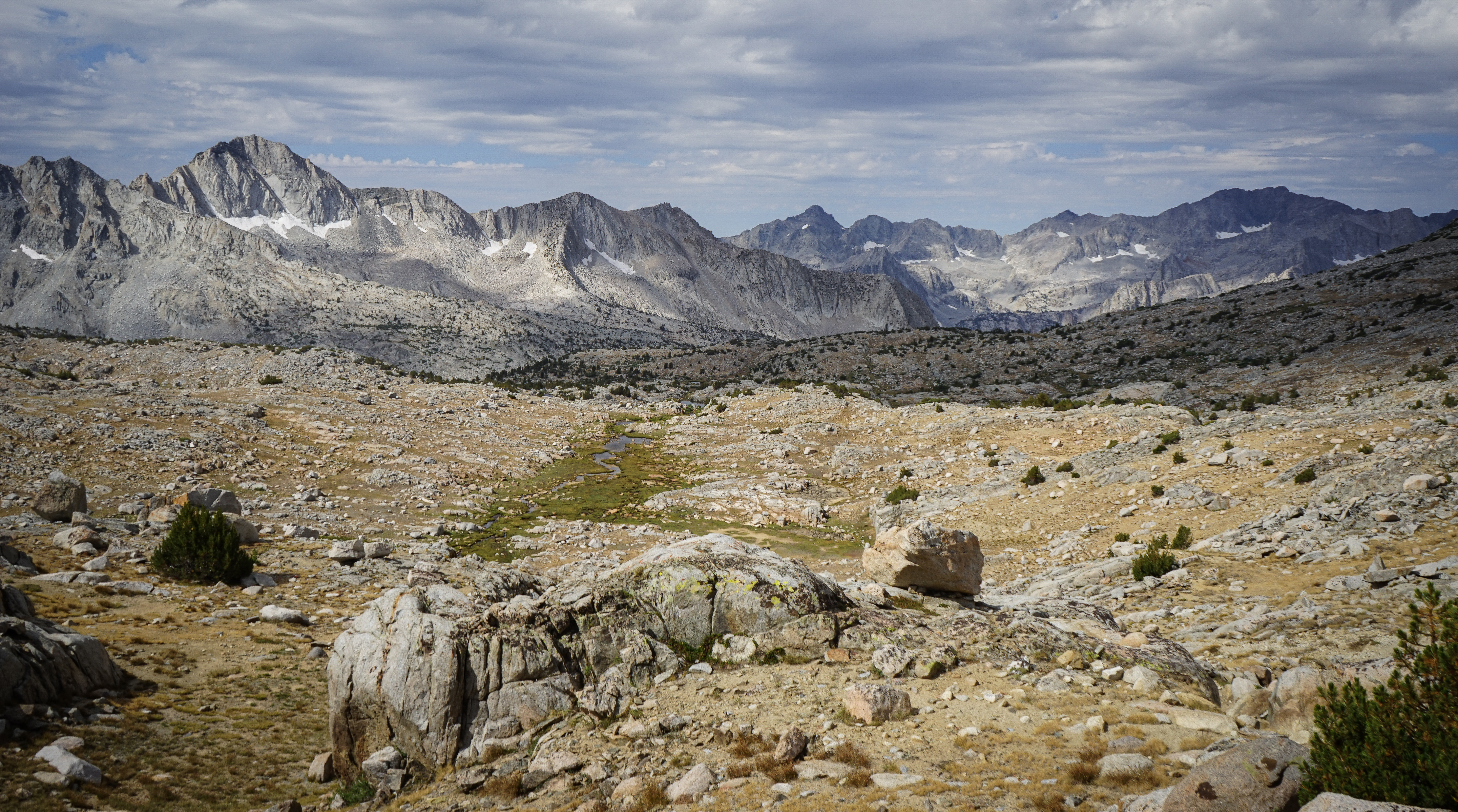 The view north to the Black Divide and Evolution Range from Knapsack Pass.