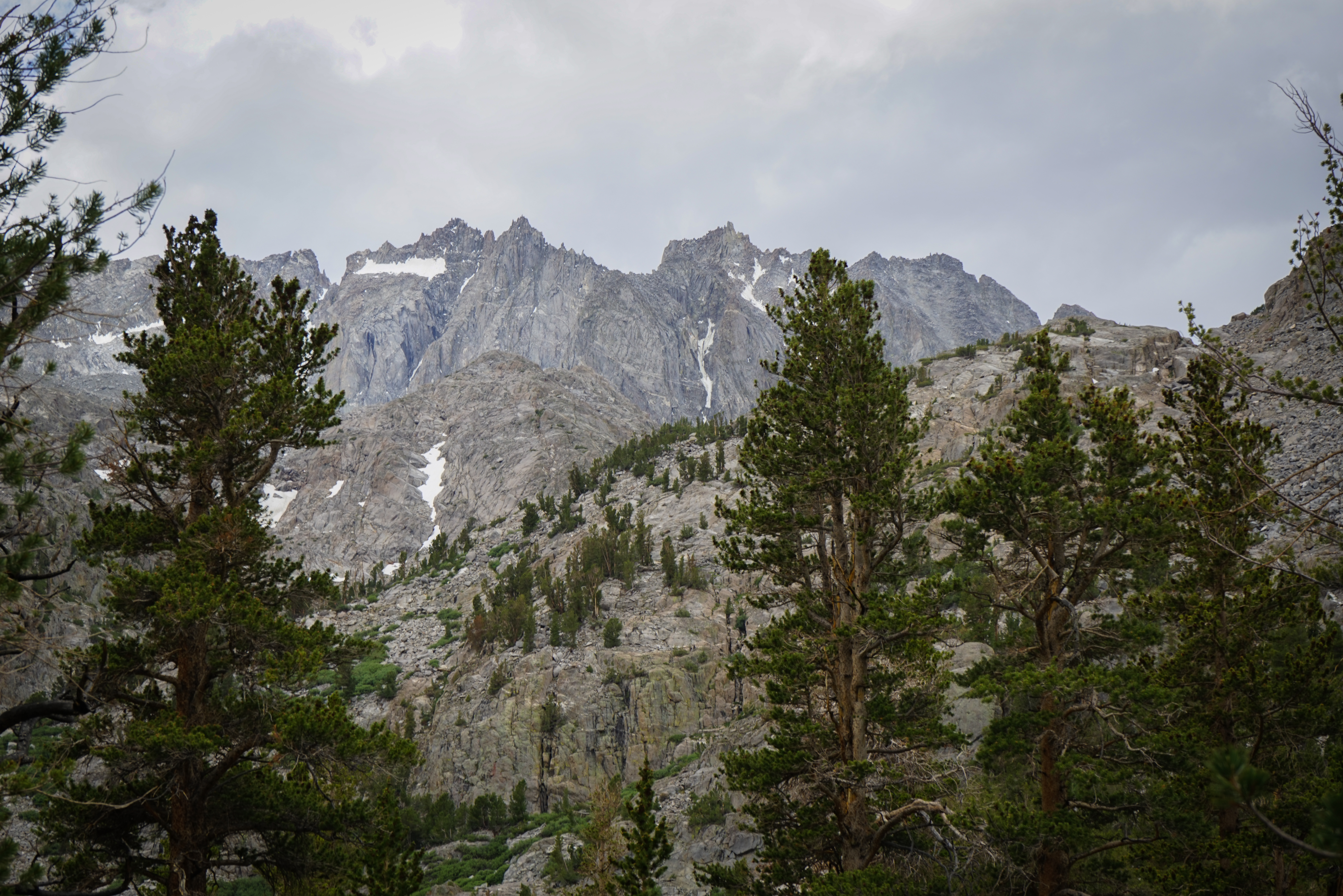 From the trailhead one can just spy Middle Palisade and Norman Clyde Peak up the South Fork.