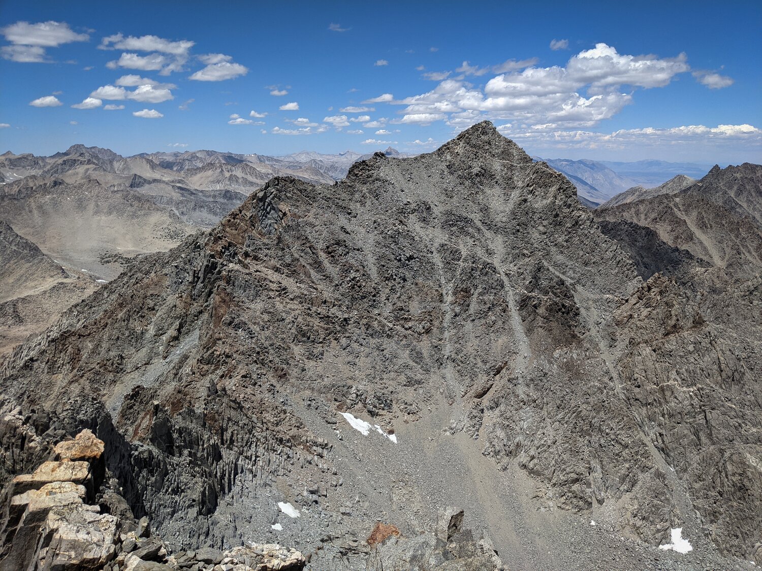 First views of the North Palisade massif from above Sam Mack Meadow.