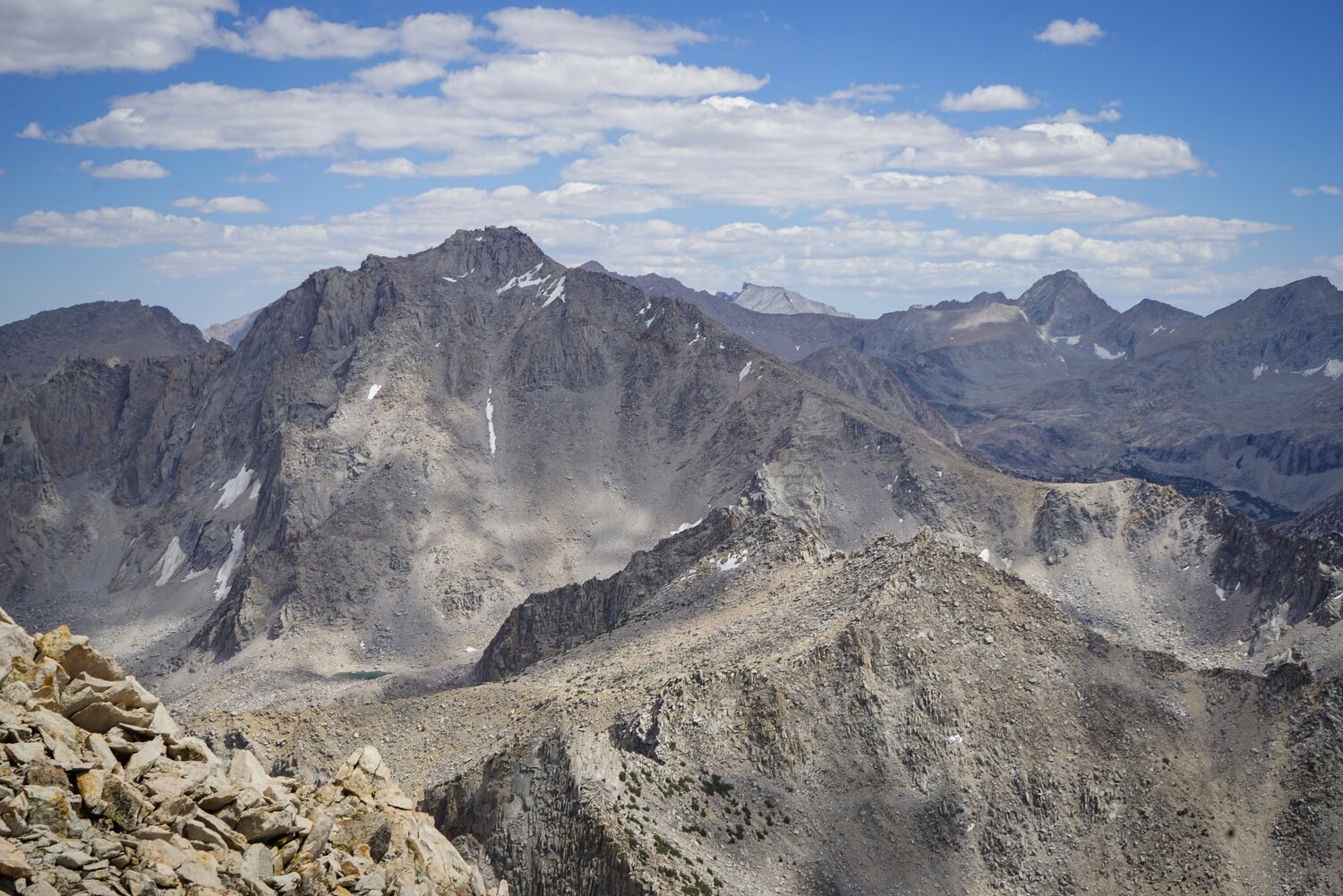 The view south from the summit of Kearsarge Peak was quite impressive. There was a good view of University Peak, of course, but Mount Williamson, Junction Peak, and the Great Western Divide poked out from behind as well.