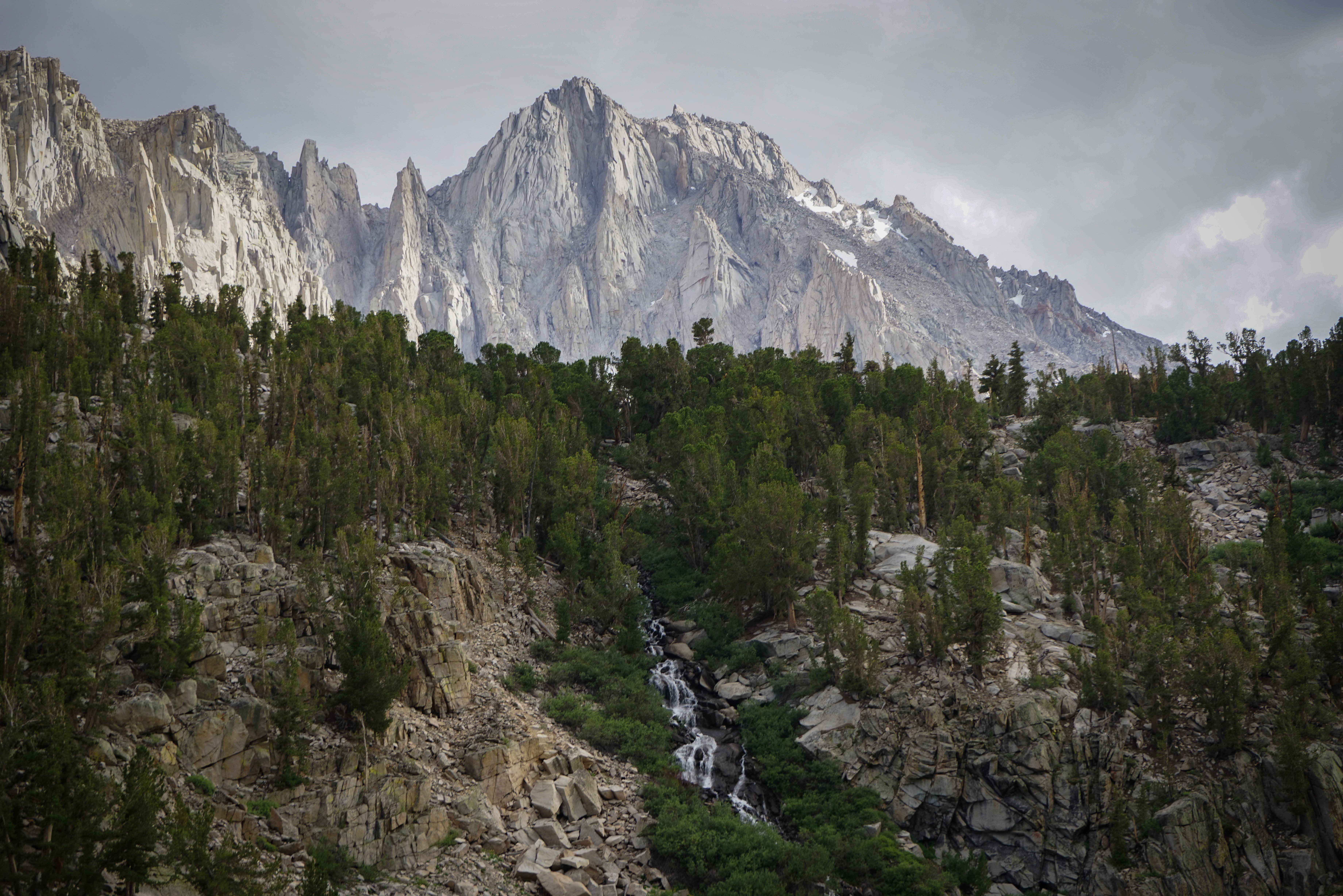 For my second outing of the week I selected a slightly harder objective, at least compared to yesterday’s outing to Mount Goode. Earlier in the year I had linked up University Peak and Independence Peak in the Onion Valley area and I planned to return to climb the trifecta of SPS peaks north of the trail here: Kearsarge Peak, Dragon Peak, and Mount Gould.