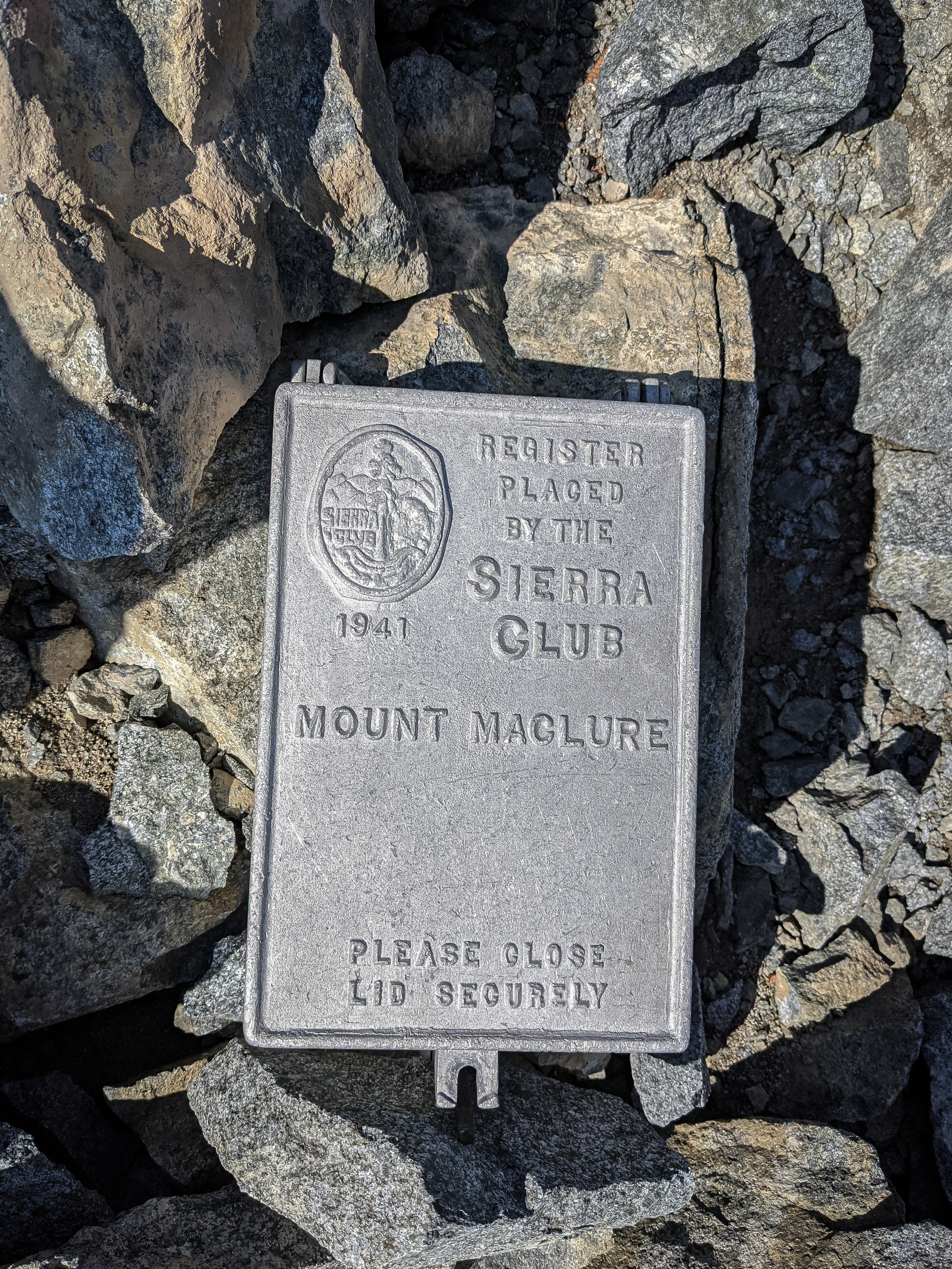 Mount Lyell is outfitted with one of the Sierra Club’s bombproof summit registers. Unfortunately all of the books were full and there were so many entries that it wasn’t particularly interesting to try and read through.
