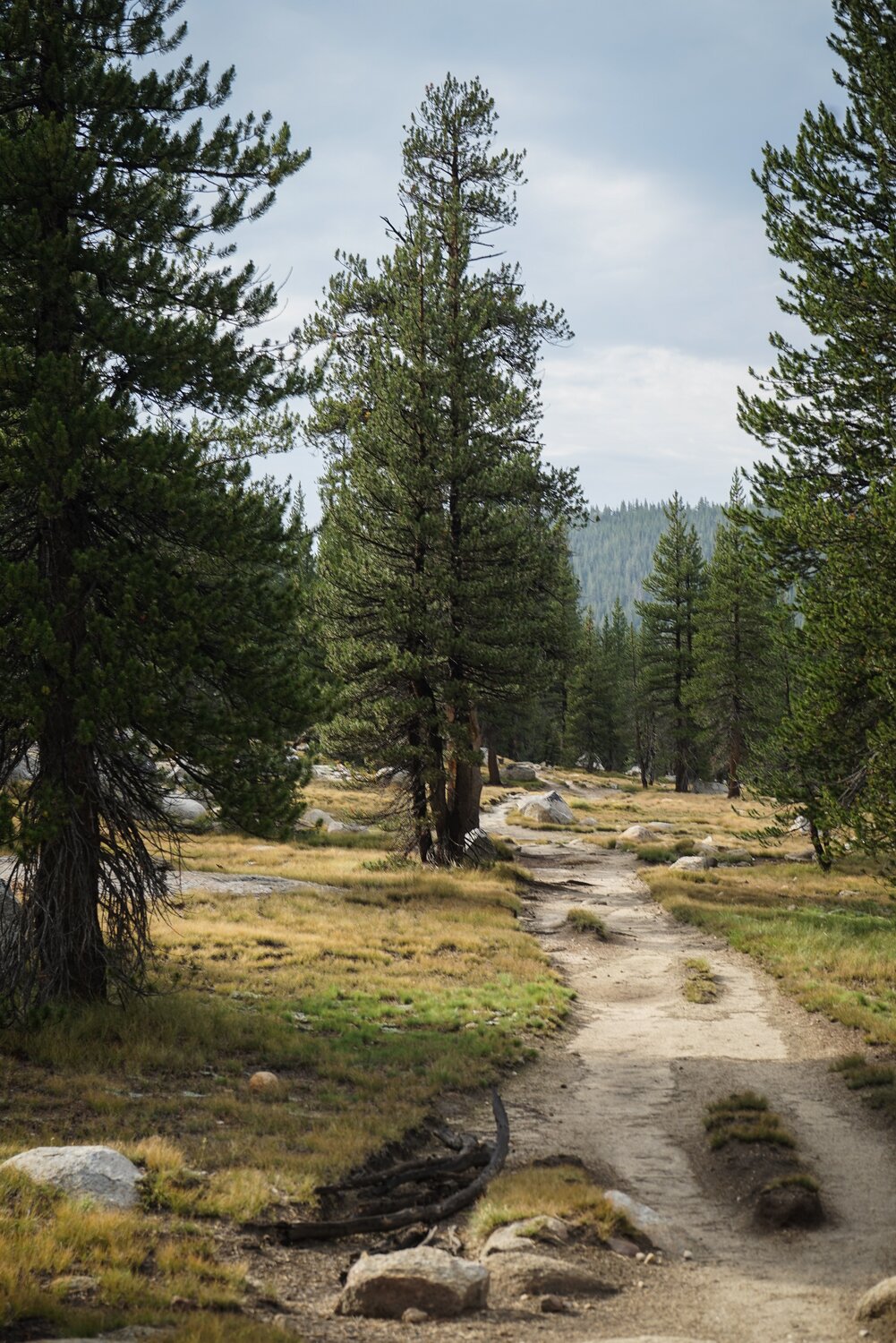 Looking down towards the meadows of Lyell Canyon from above. We passed a couple of groups heading up for Donohue Pass, but it wasn’t terribly busy. We took a break for more water and a snack once we reached the head of Lyell Canyon. It rained just enough to make us pull out our raincoats, but let up before long.