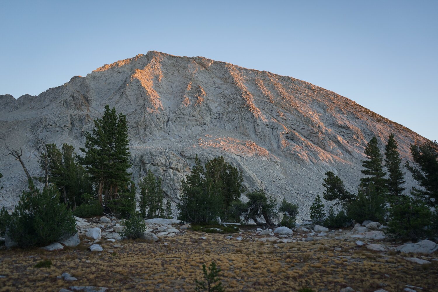 Climbing up Lewis Creek, with Half Dome poking out far to our west. We thought the smoke might be starting to clear in advance of the coming cold front, but we couldn’t tell for sure.