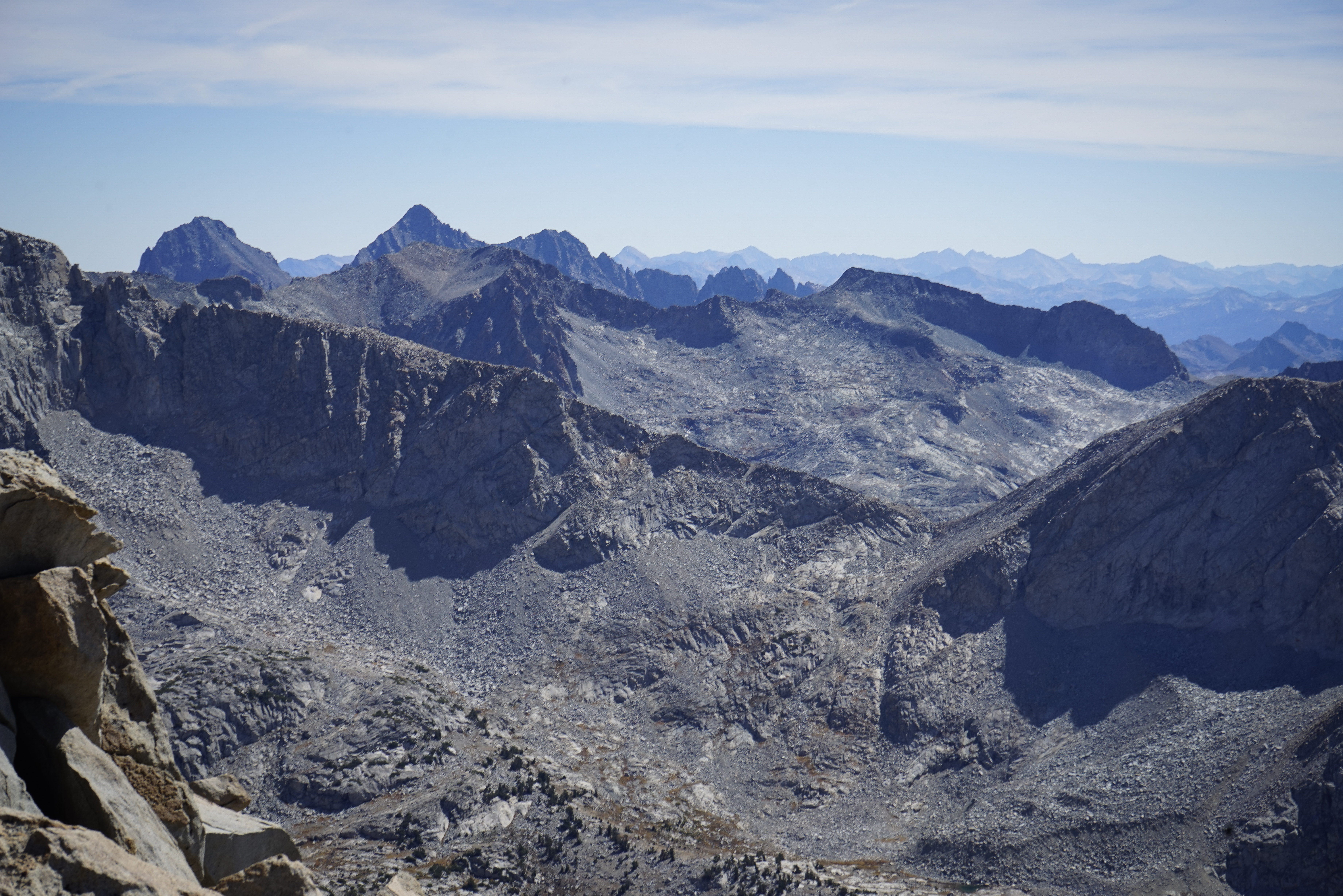 Looking south towards Foerster Peak and Mount Ansel Adams from Sluggo Pass.
