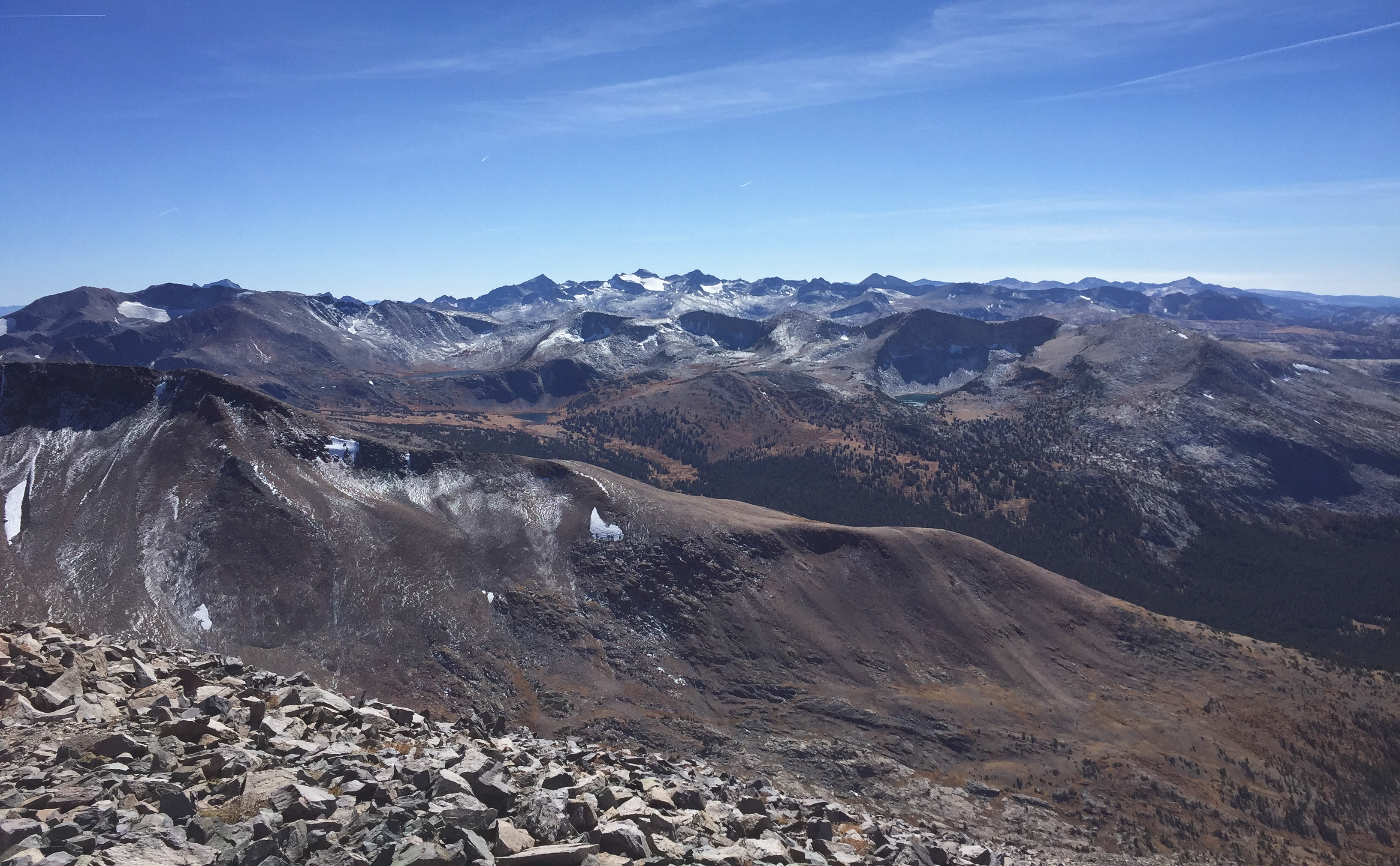 Despite its relatively high elevation (13,057’), the hike up Mount Dana is not too difficult. It’s a bit less than 3 miles to the summit, though each of those miles climbs almost 1,000’. There’s a trail for a bit which fades into a relatively well-traveled use trail to the summit.
