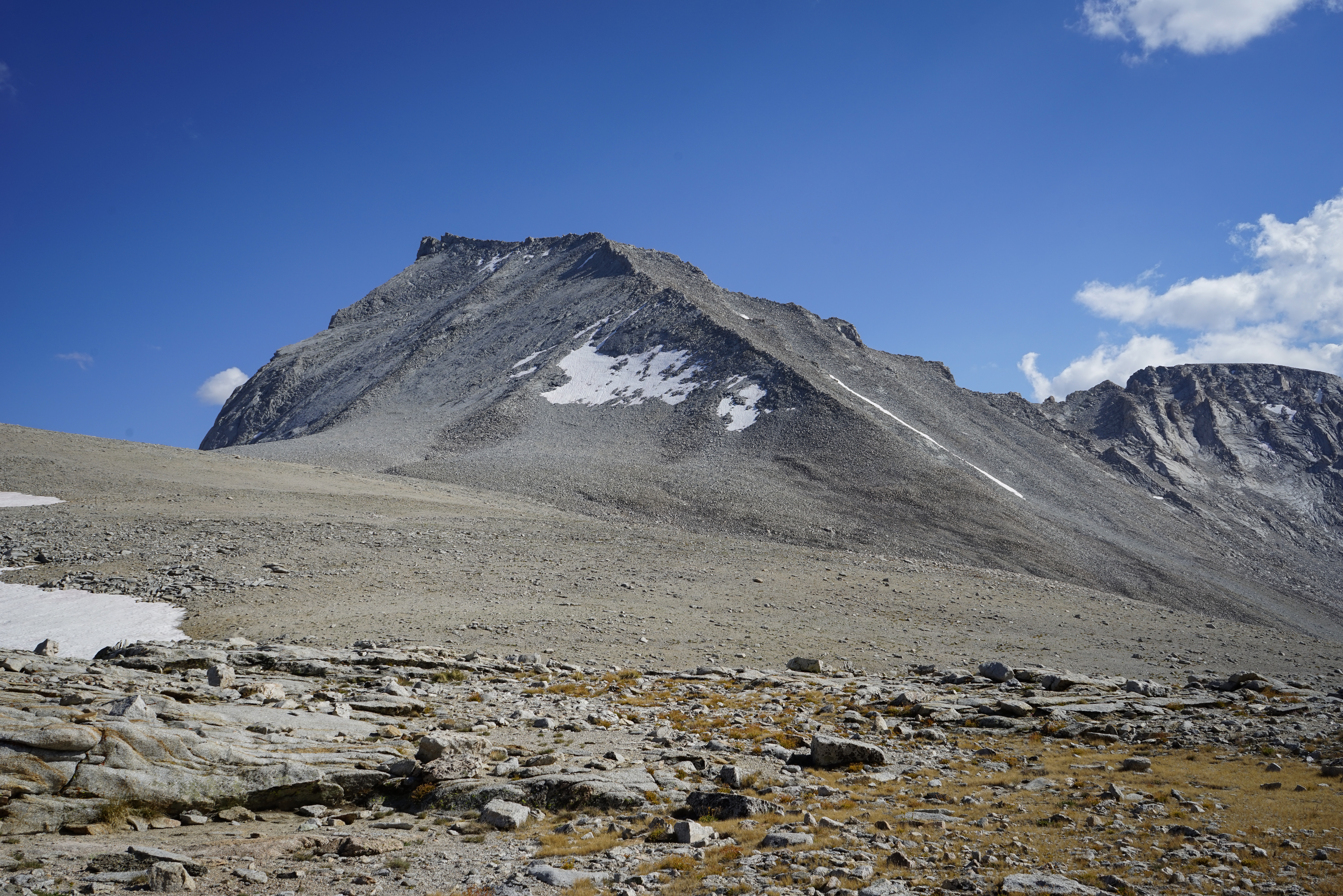 We toiled up the climb towards Shepherd Pass all day, eventually reaching the pass in mid afternoon. We were treated to awesome views of Mount Tyndall. We figured we would tackle Williamson first, the next day, and decided to drop to one of the lakes in the Williamson Bowl, hoping we could find a flat space to sleep in the talus.