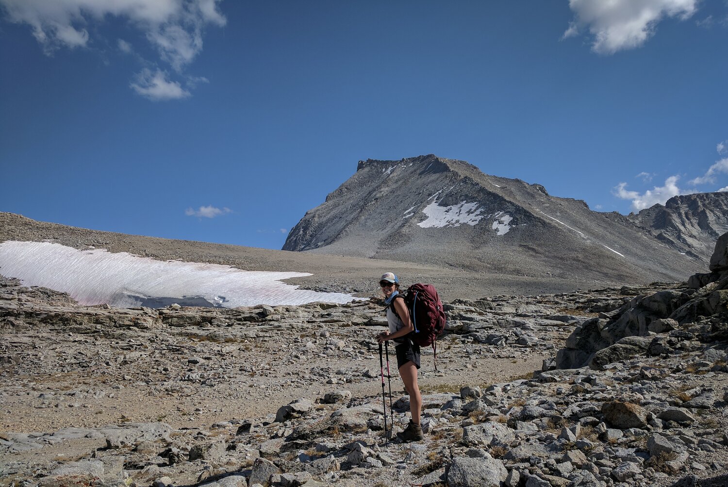 We didn’t rise too early, tired from our long drive, but eventually the morning heat woke us and we packed up and headed up the Shepherd Pass Trail. Despite its reputation, the Shepherd Pass Trail has some redeeming qualities. It’s very beautiful, climbing from the desert sagebrush through pine forests, along a creek to Anvil Camp, and finally easily passing through a boulder field en route to Shepherd Pass. There are some online who complain of the difficulty of this climb, which is made worse by a 500’ descent about halfway up, and that’s fair, but it’s a high bar to ask all of these eastside trails to provide the beauty and easy access of Onion Valley or Bishop Pass.