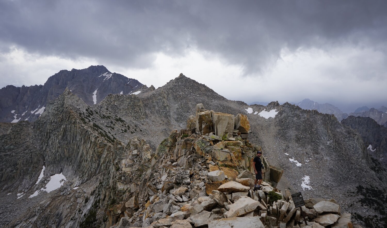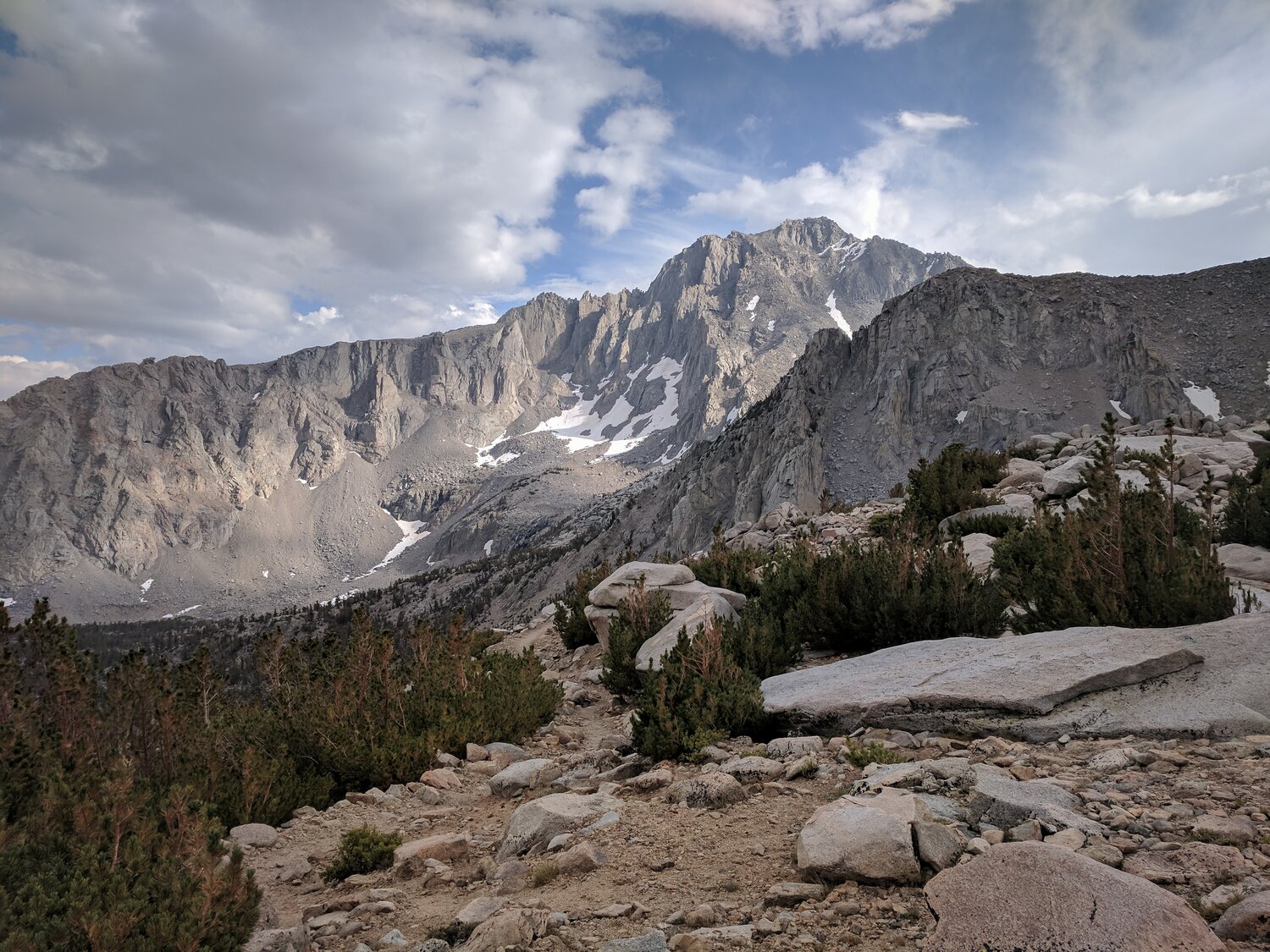 A slight break in the clouds revealed University Peak to the south. This was as we approached Kearsarge Pass.