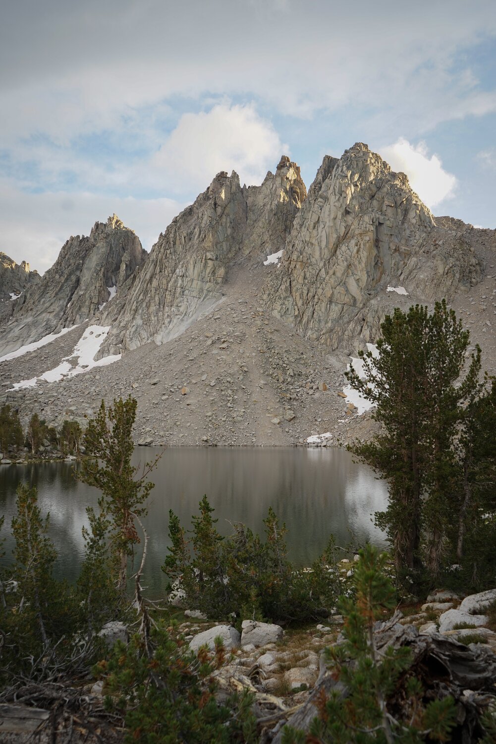 My dad arrived the next morning and we finished packing up and headed up towards Kearsarge Pass under cloudy skies.