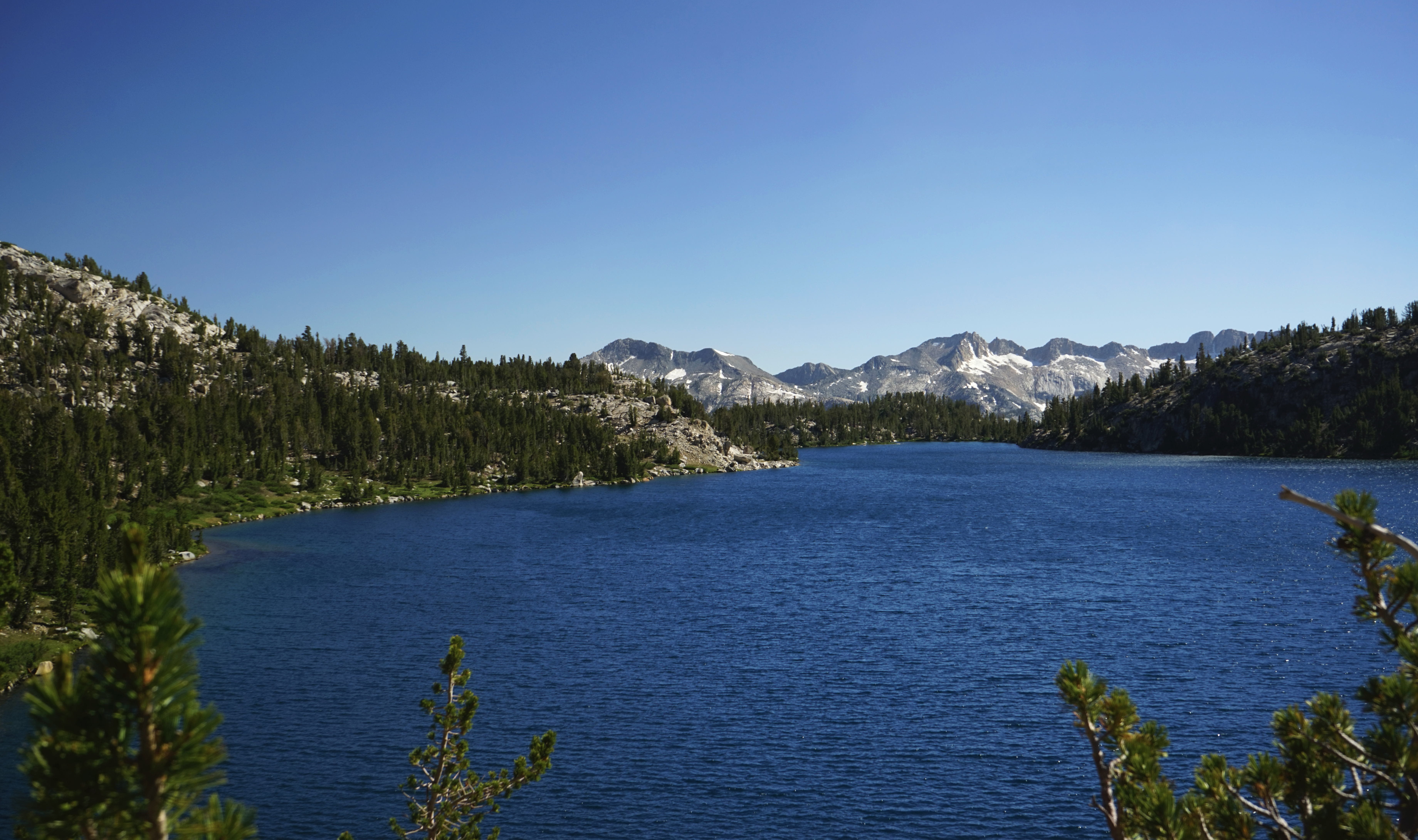 After slogging for a few more hours, the trail hits the beautiful Virginia Lake which sits on a high bench with a backdrop of the high mountains of the Silver Pass and Mono Divide areas.