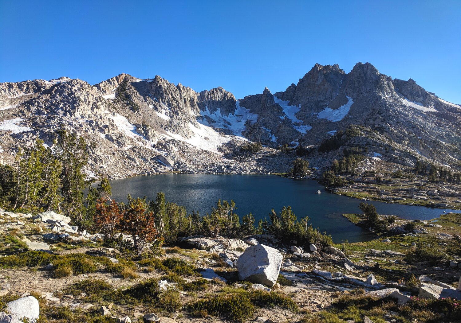 Beautiful, alpine Chief Lake is the last high lake before crossing Silver Pass (10,754’).