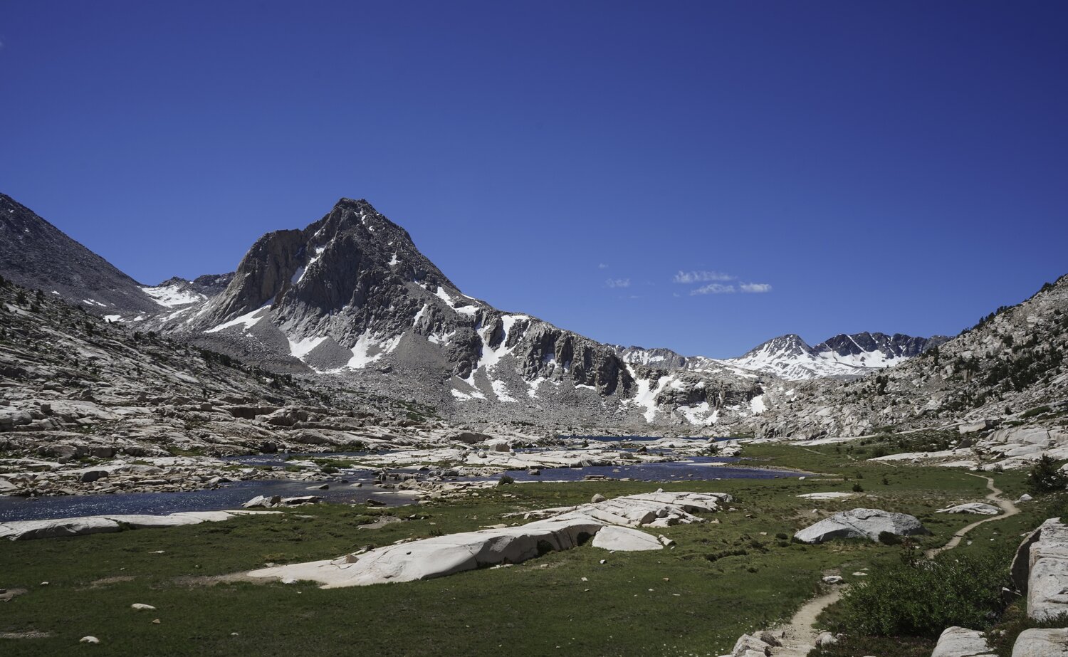 Wanda Lake. The vegetation thinned approaching the crest of Muir Pass.