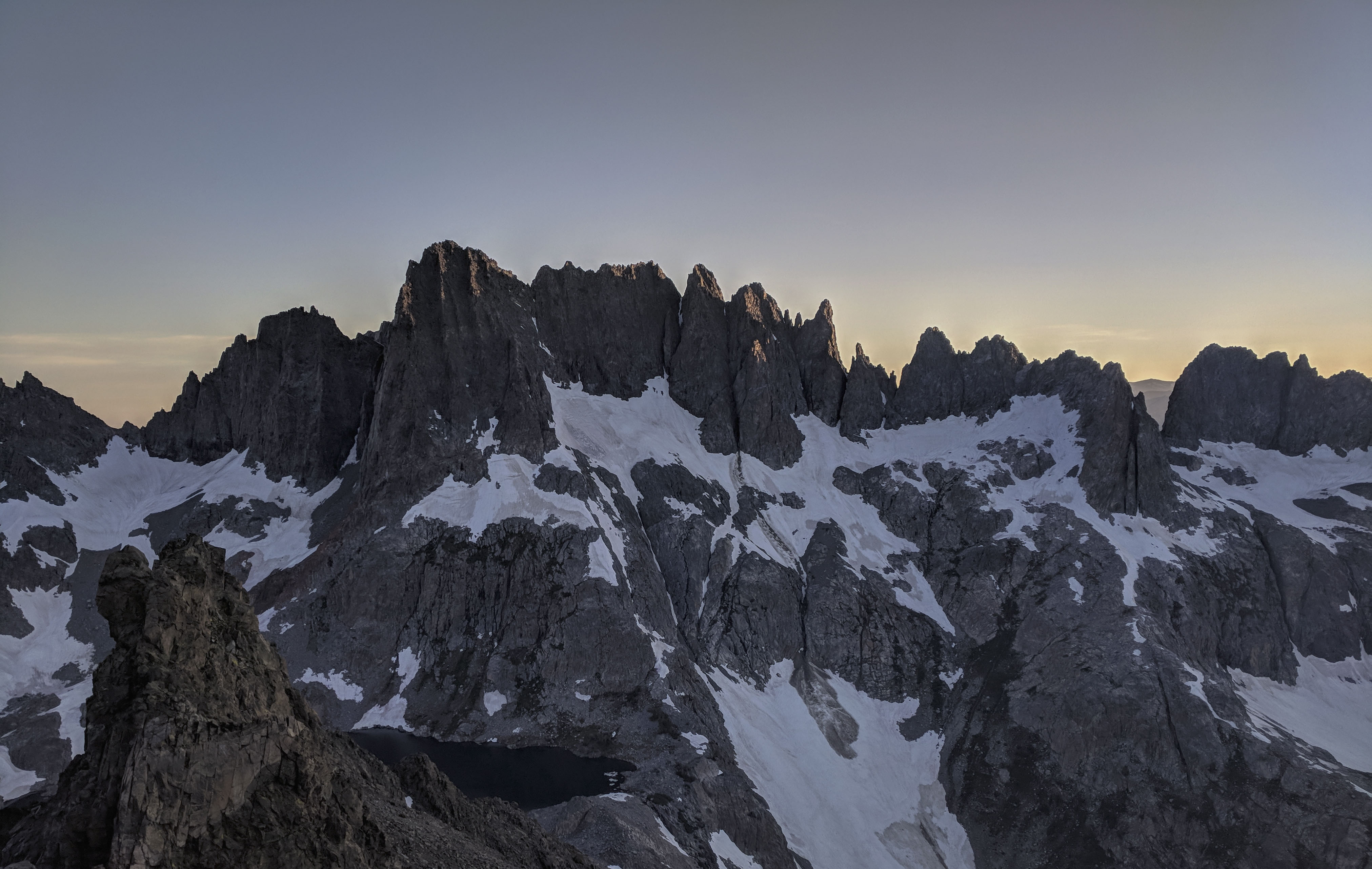 The views from the summit were phenomenal, and our choice to summit late (about 7 o’clock) treated us to a fantastic sunset over the Minarets.