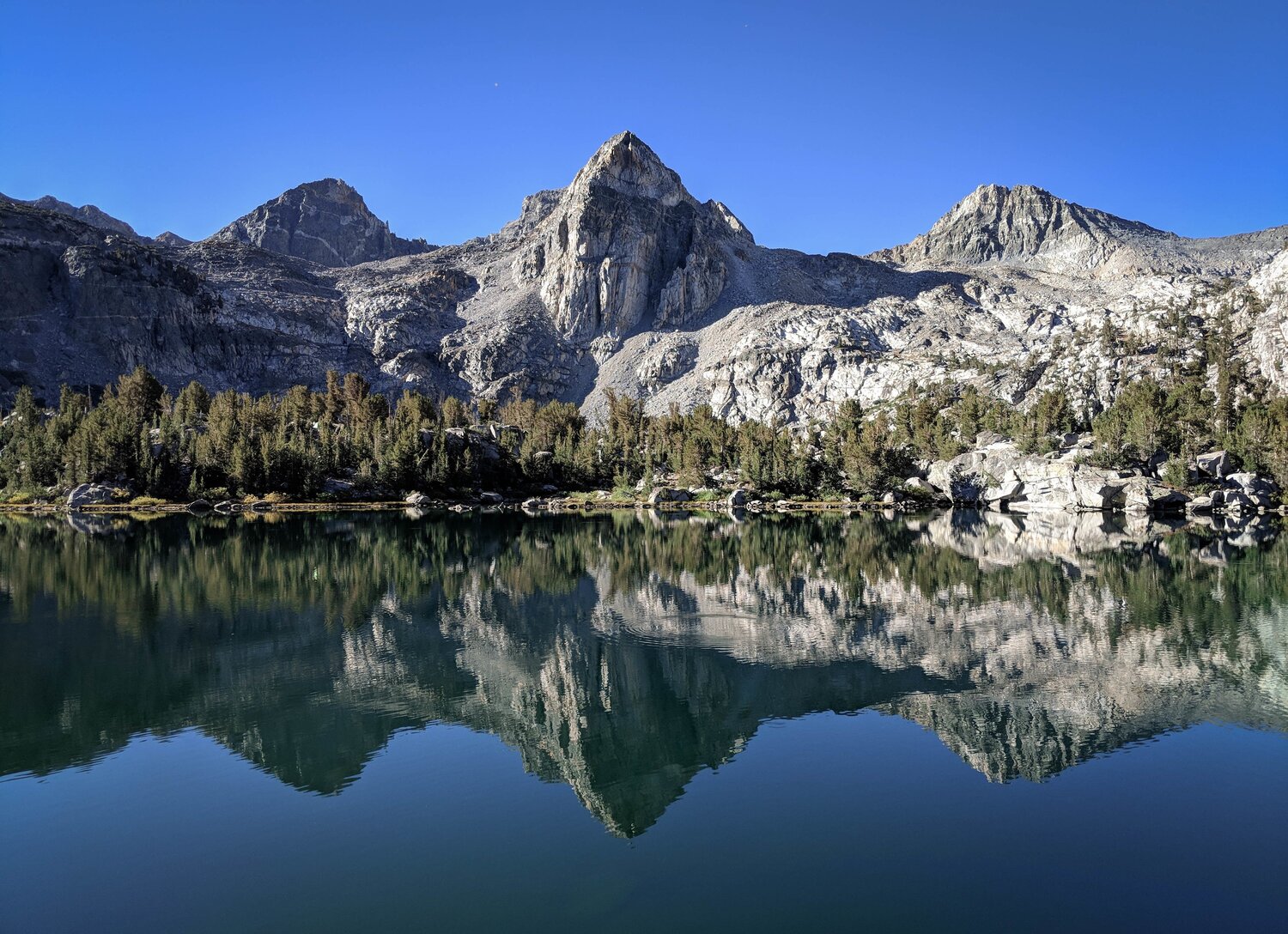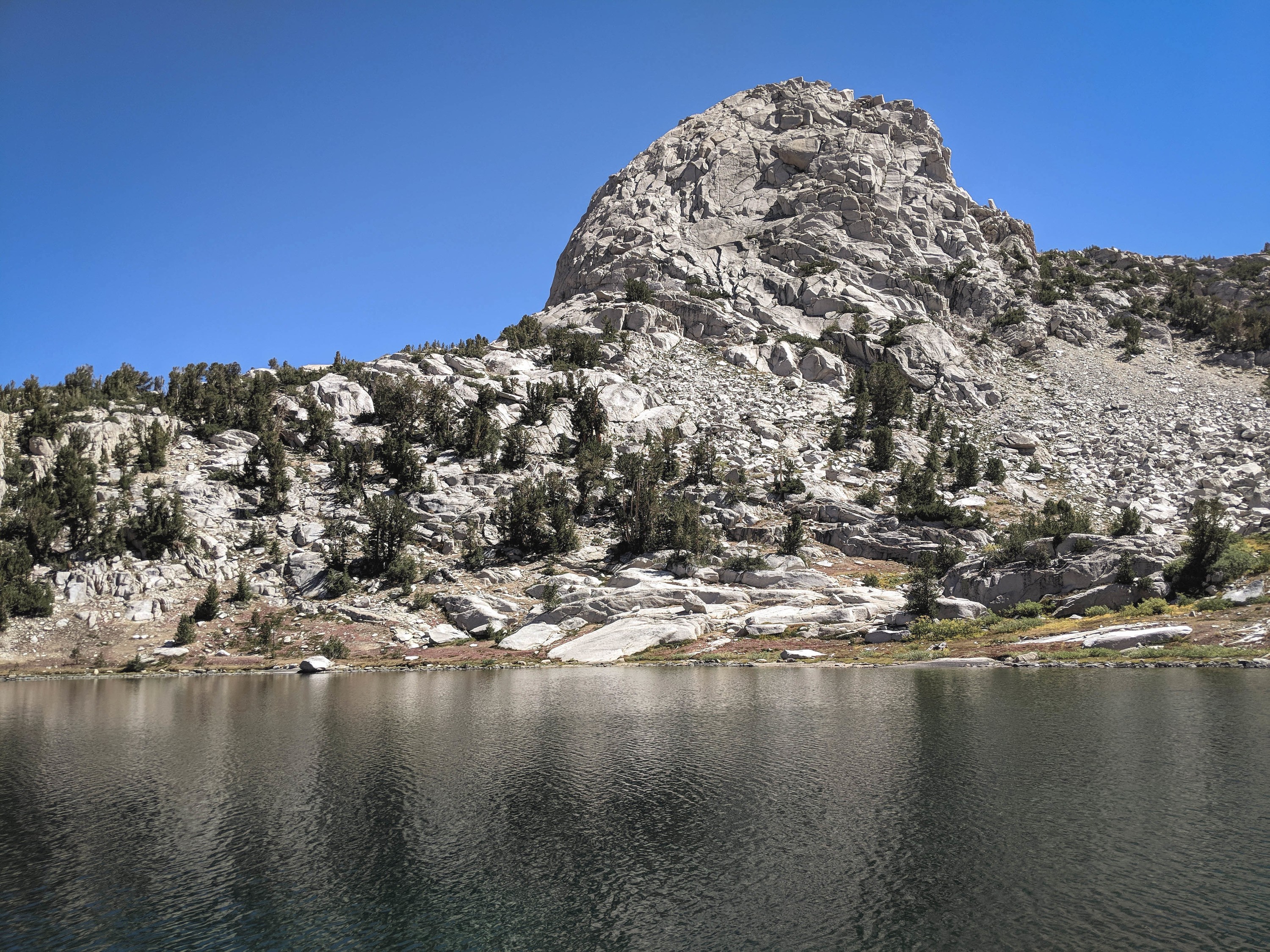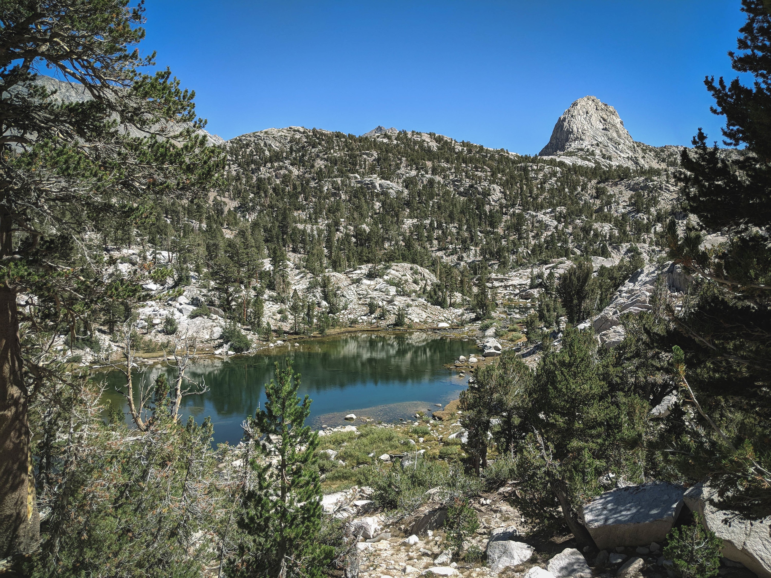 Eventually we found our way back to Rae Lakes, enjoyed a dip, and moved on to get a picture from the high peninsula near the ranger station.