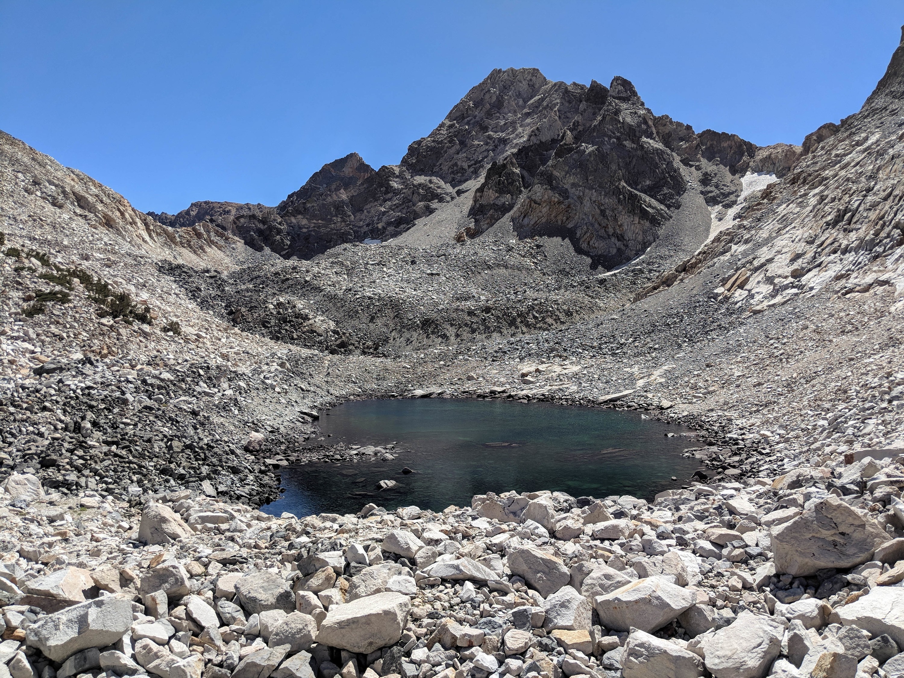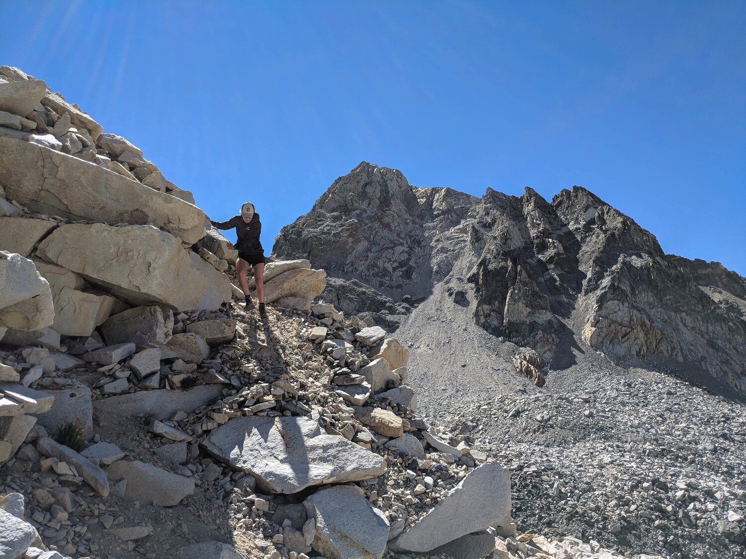 The trail above East Lake fades to nothing and frequently disappears beneath talus fans. It wasn’t difficult to follow, as it’s ascending a canyon to a lake, but beginner hikers might find it a bit adventurous.
