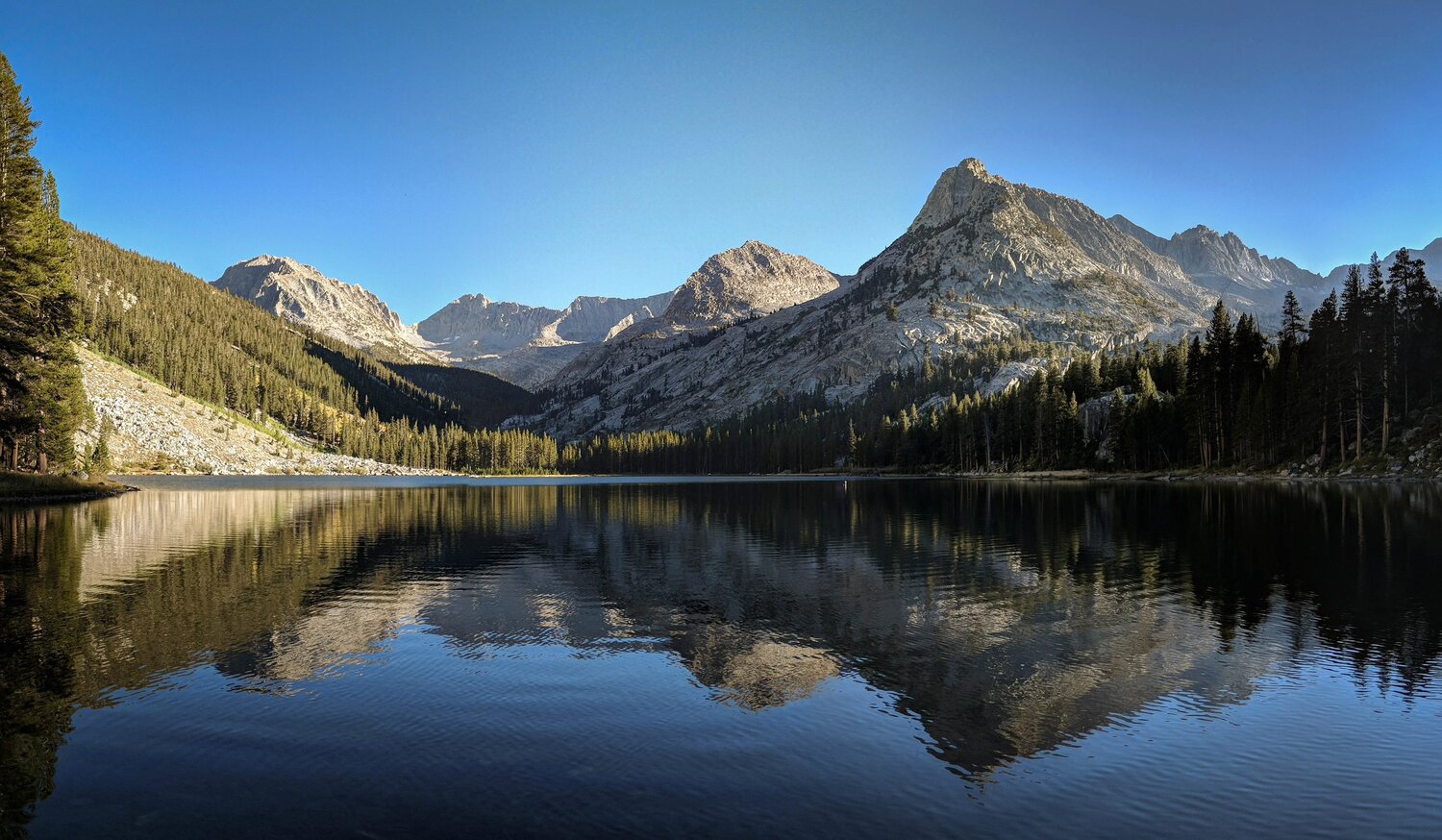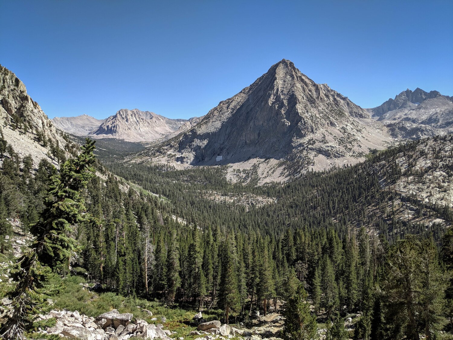 Looking south from Glen Pass towards Mount Brewer, and Lake Reflection.