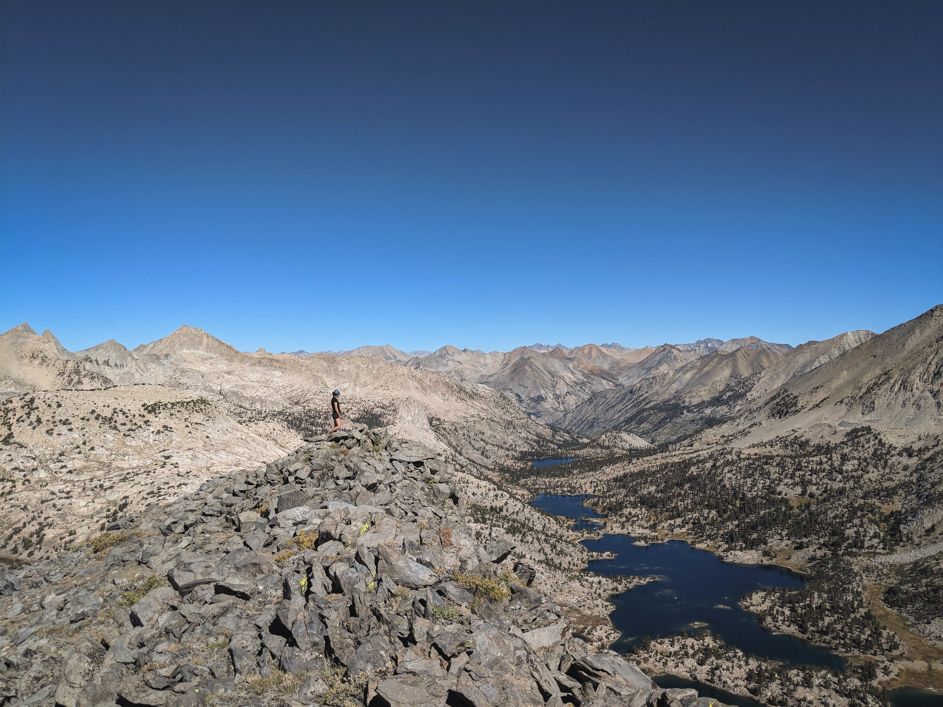 Standing atop the Painted Lady, overlooking Rae Lakes. The Palisades are poking out in the background.