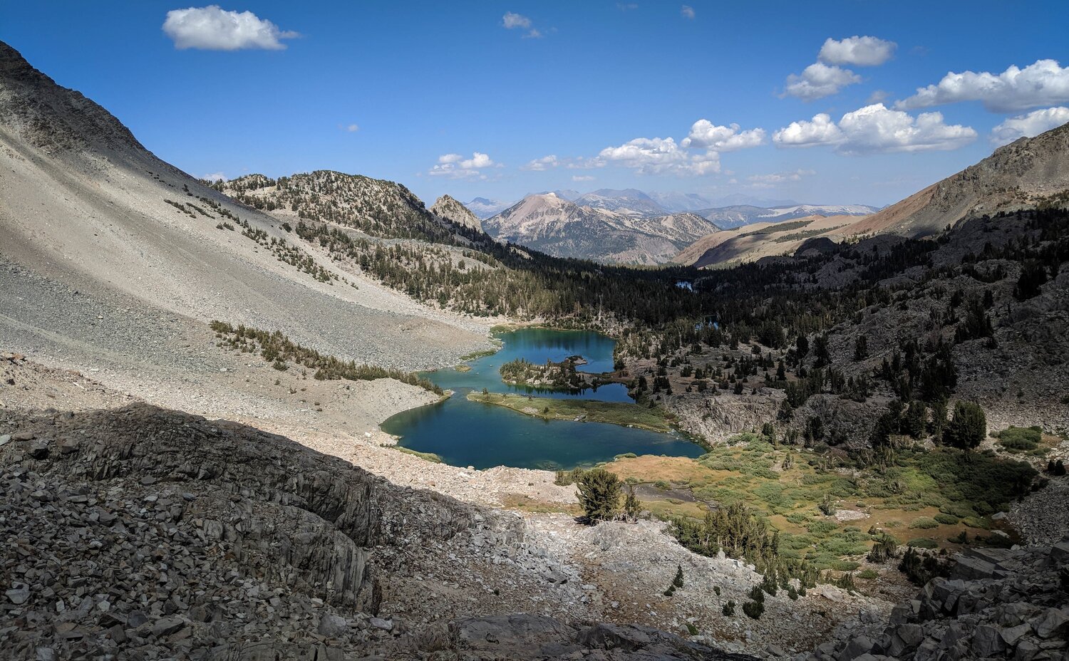 Looking north from Duck Pass. On the 6th, we picked up our permit in Mammoth, a walk-up permit for Kearsarge Pass. We enjoyed a quick day hike up to Duck Pass before driving south.