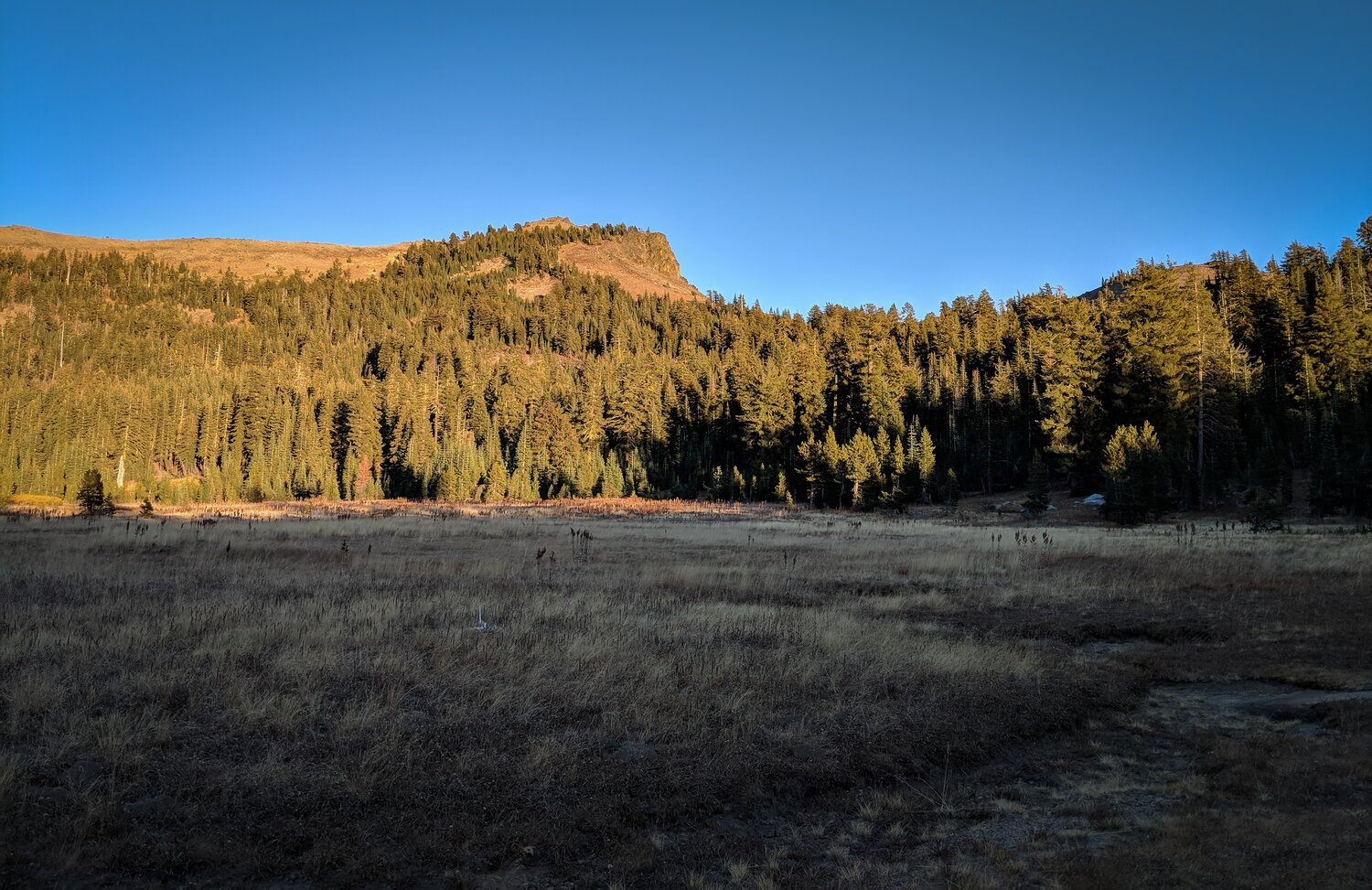 The way down was a bit easier, though a bit loose at the top. Here’s the view of Castle Peak across Round Valley, from near the hut.