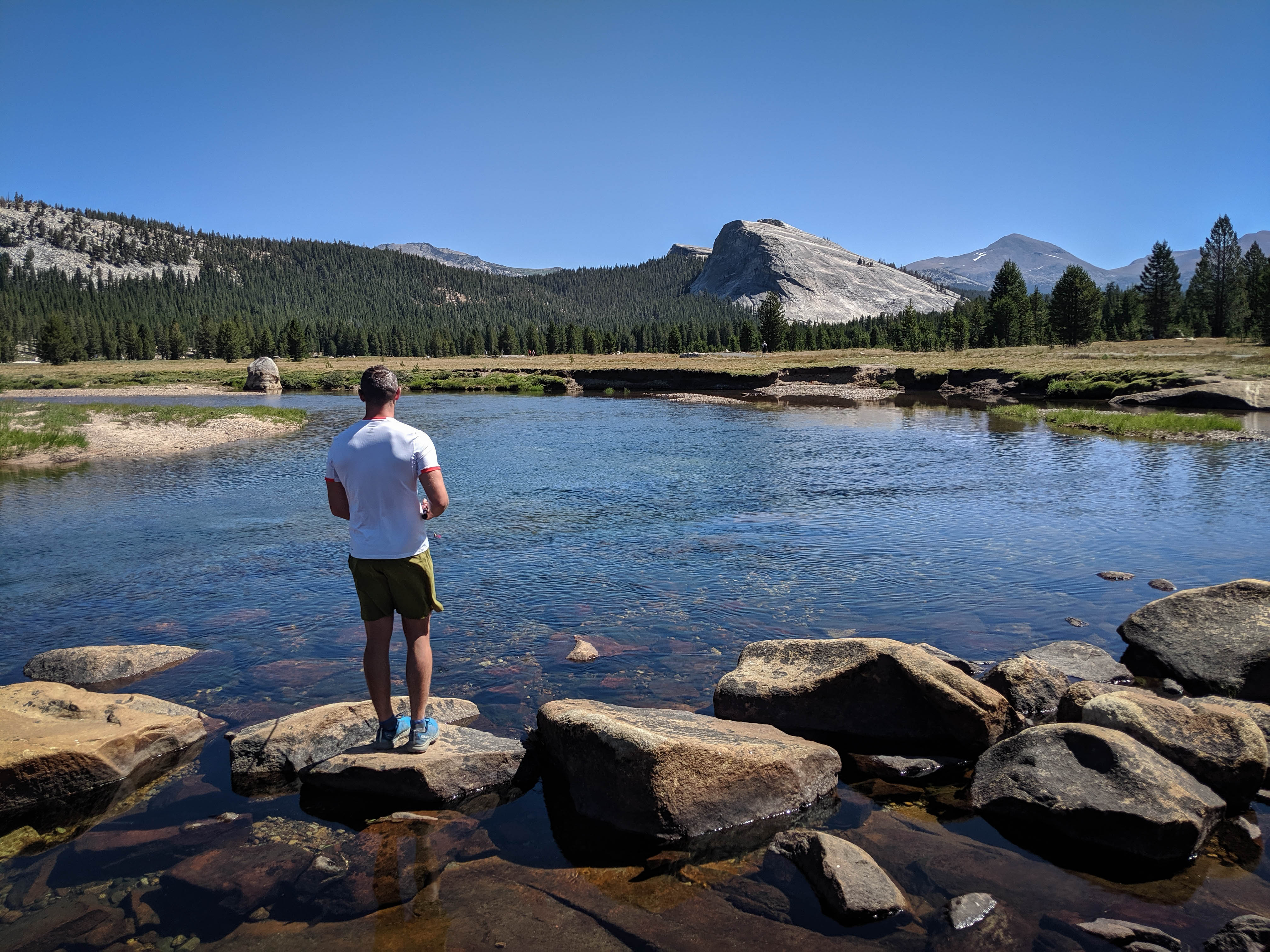 We took the scenic route through the park and stopped in Tuolumne Meadows to fish for an hour or so. Braden caught a couple of small trout, but I didn’t have any luck.