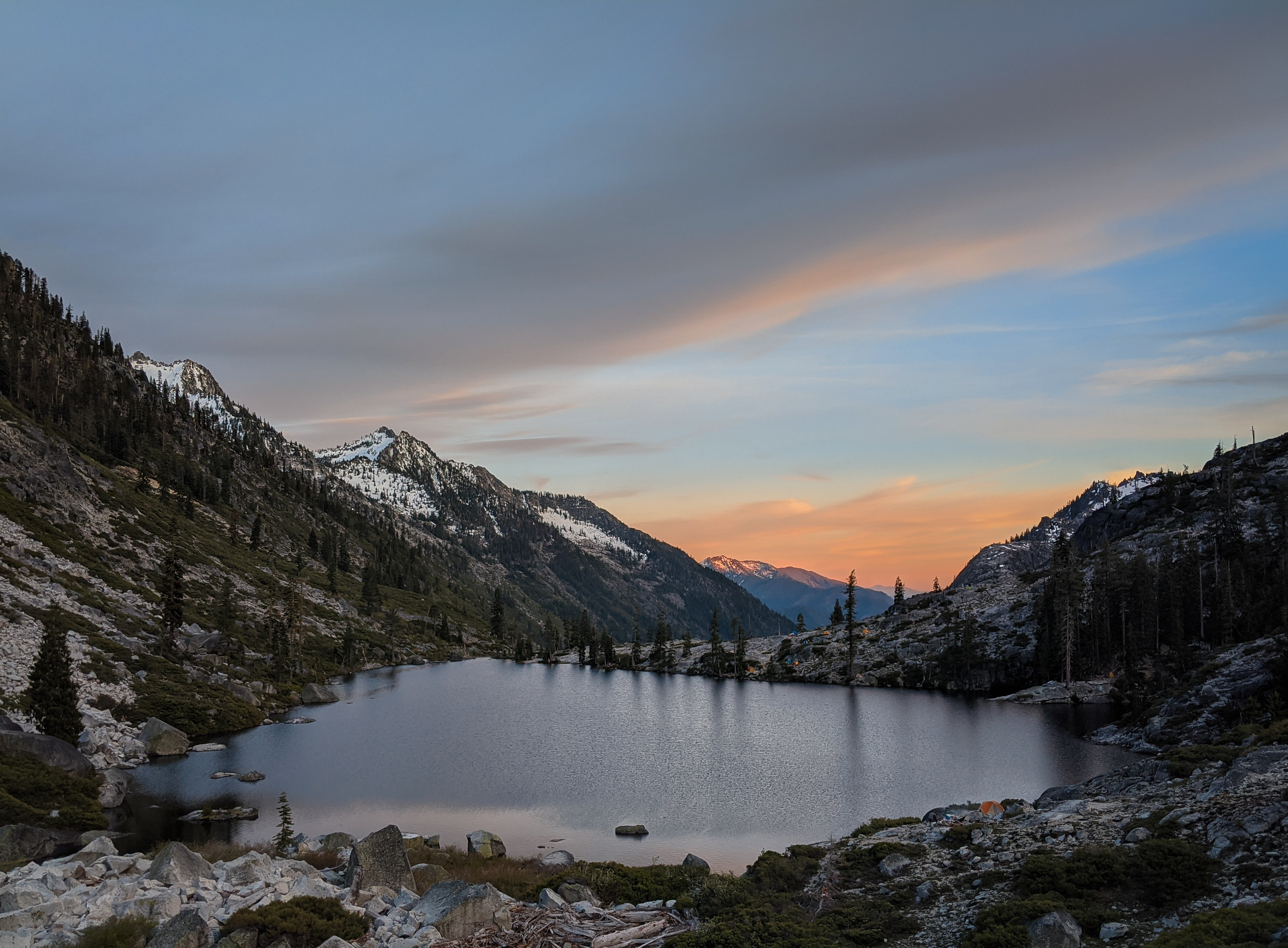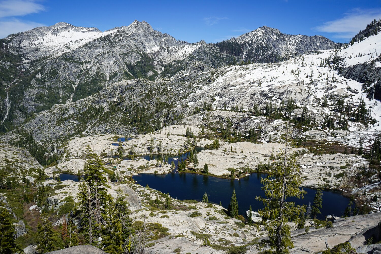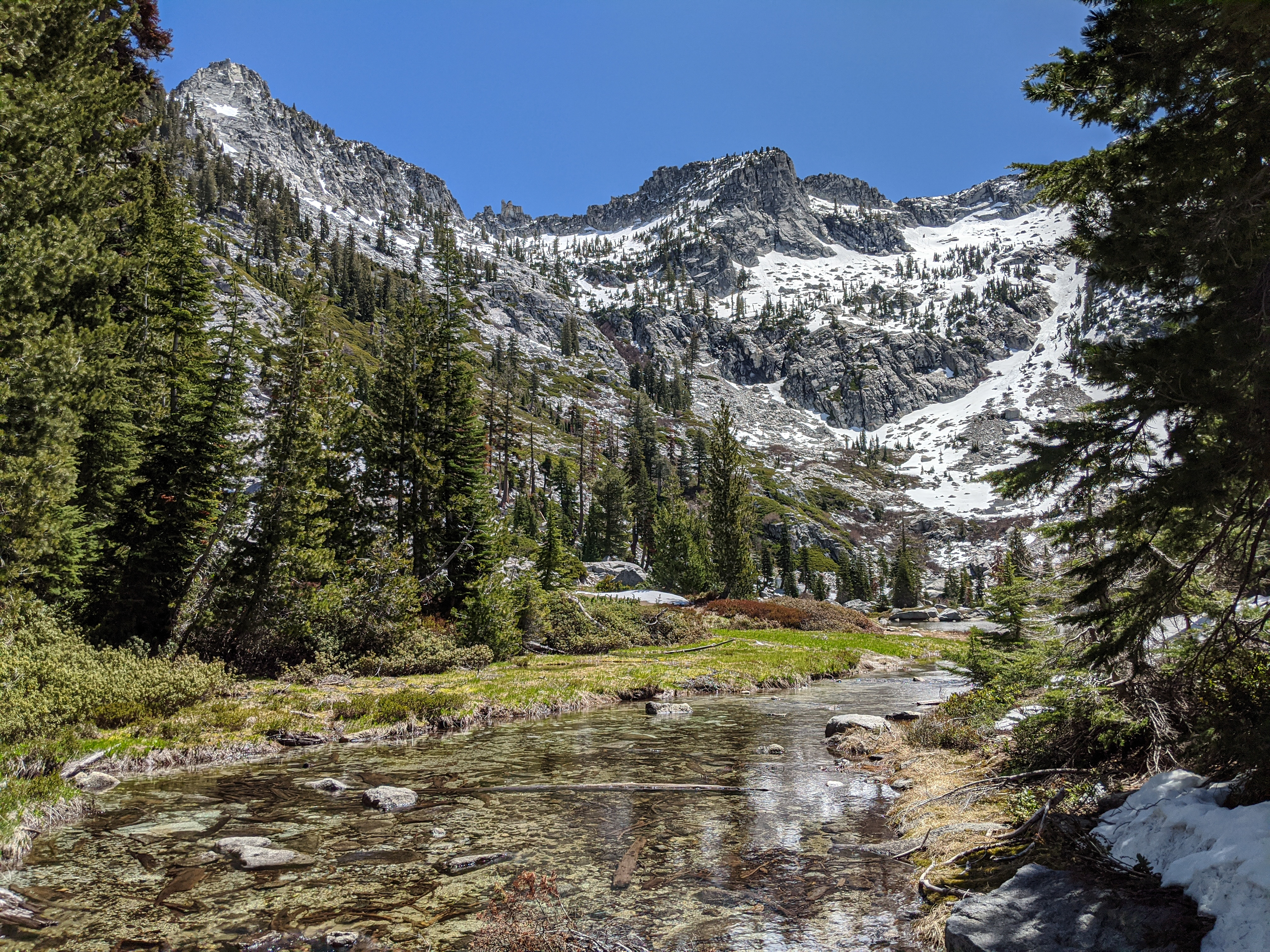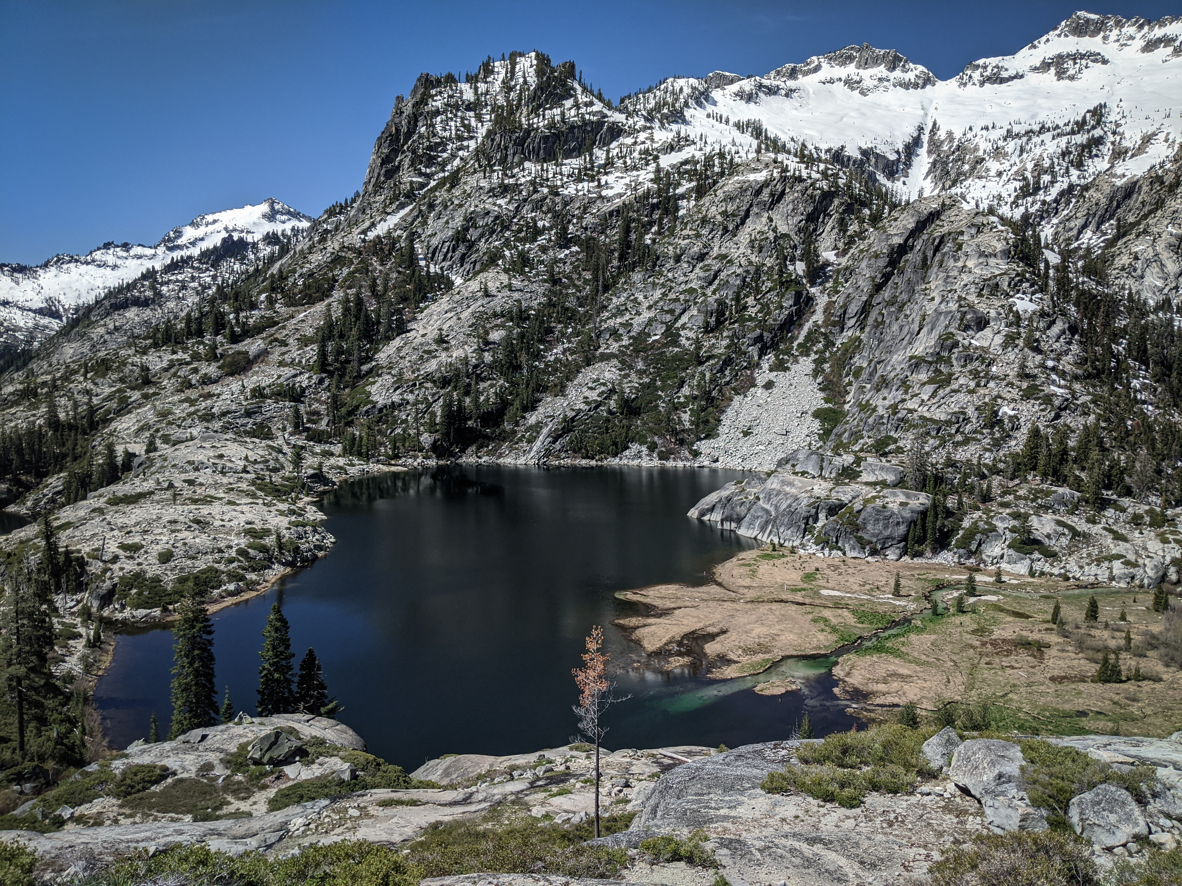 This trip report covers a 4 day backpacking trip I took in the Trinity Alps over Memorial Day weekend in 2020. I chose the Canyon Creek area of the alps because many of the other alpine areas of California were either closed due to the COVID-19 pandemic, or still snow-covered from the previous winter. The Alps were open for business and I could see on the satellite images that the lakes had melted out a few weeks early. So, I drove up on Thursday night and camped at the quiet Ripstein Campground just below the Canyon Creek trailhead and headed out the next morning.