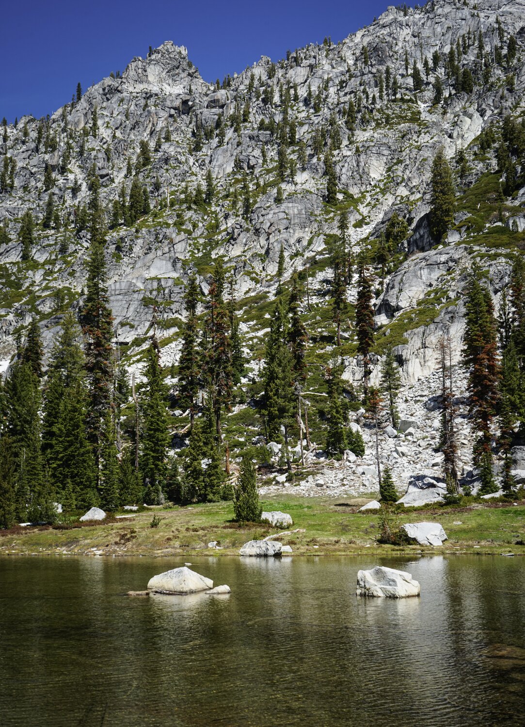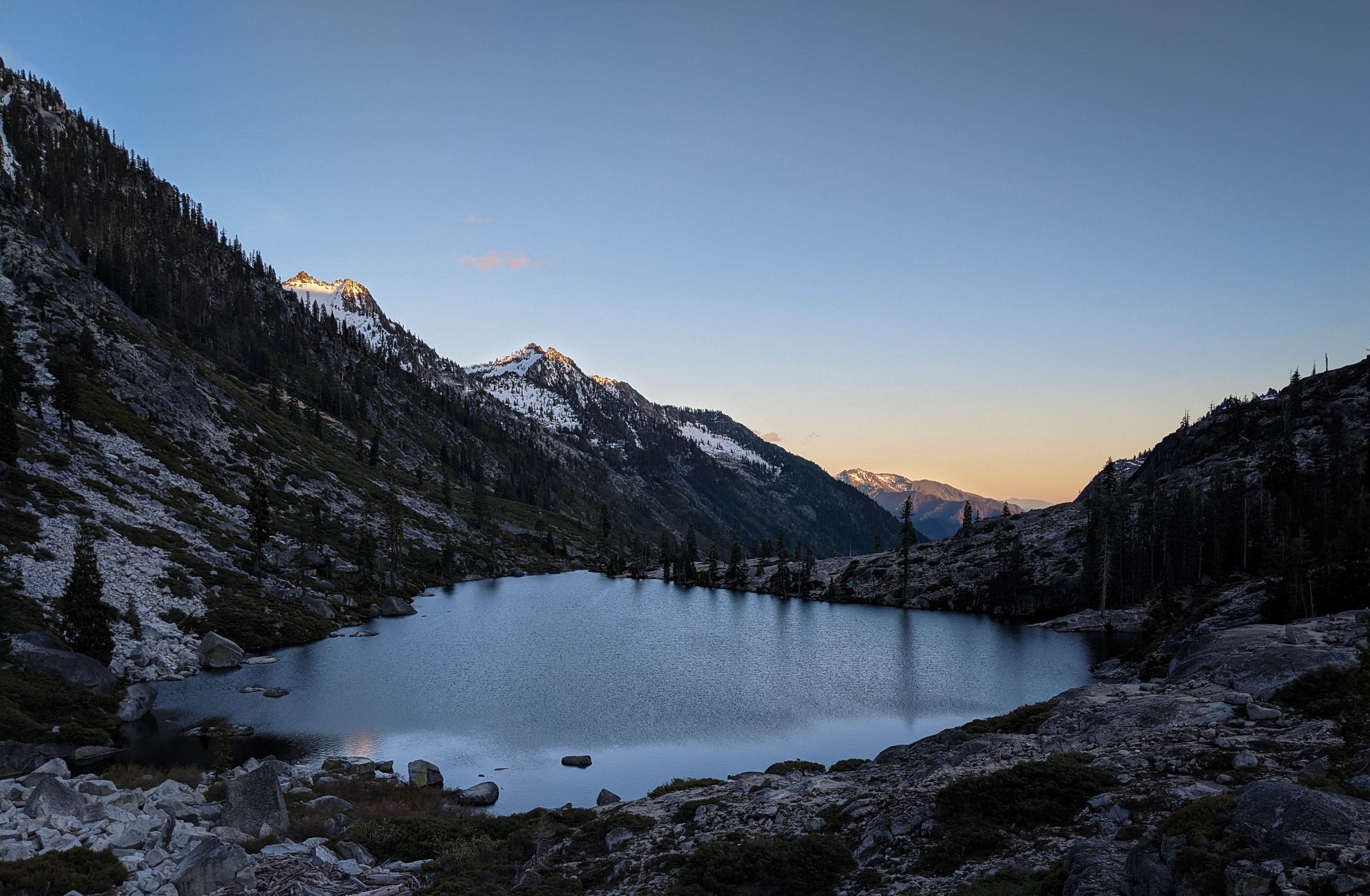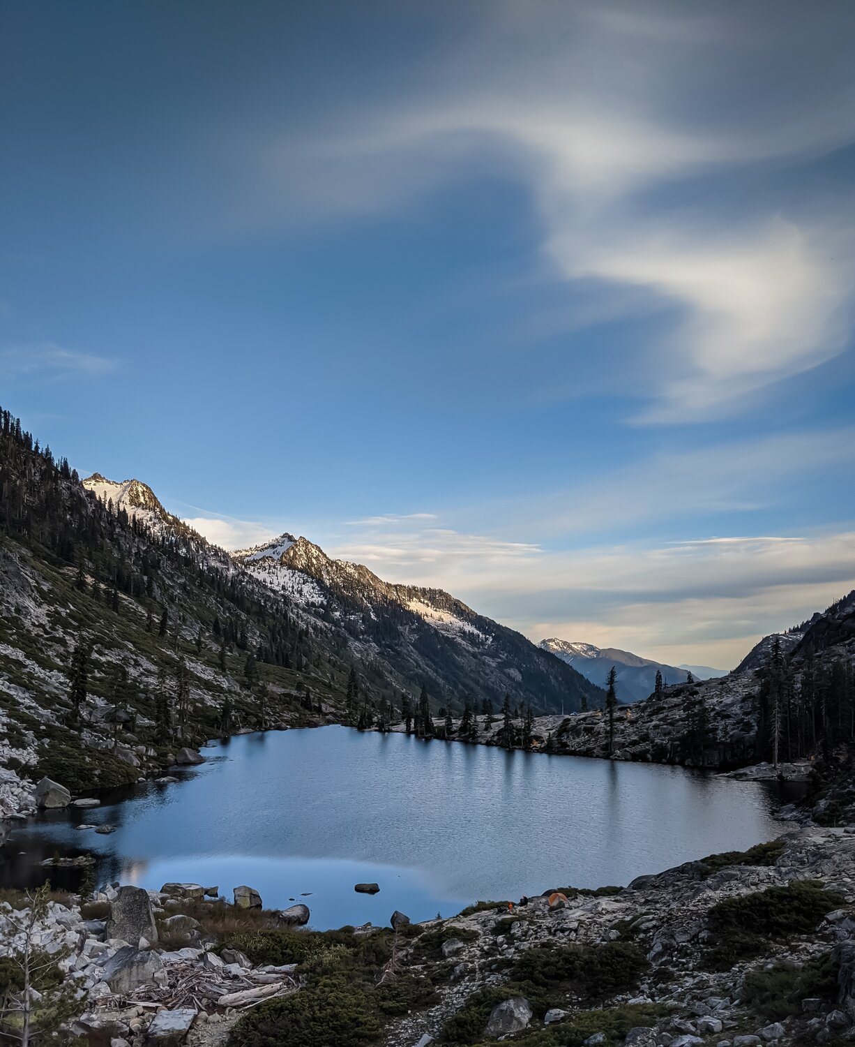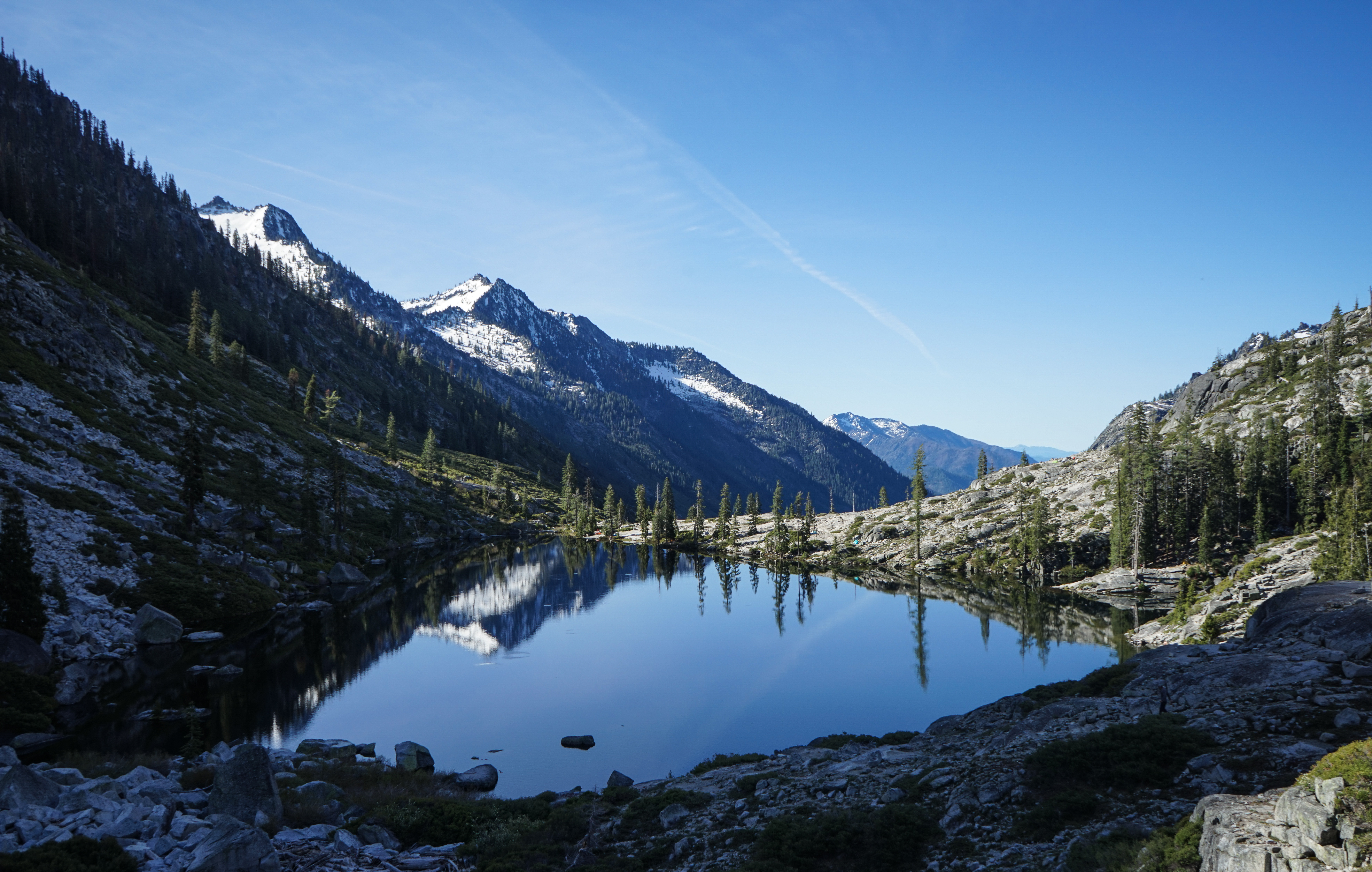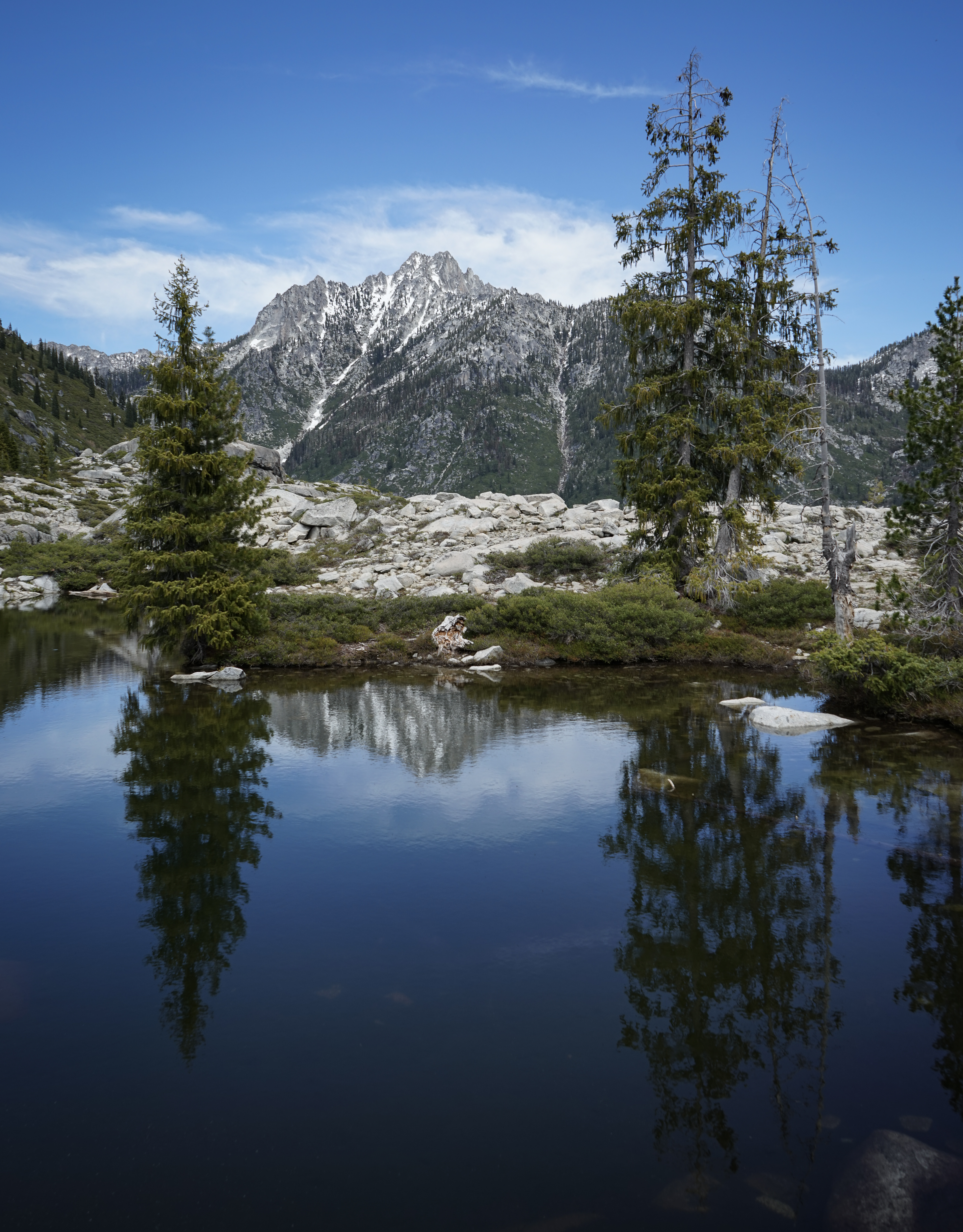 Today was Saturday and it was getting busy. With the crowds came a few people breaking the rules, campfires aren’t allowed in the Canyon Creek Lakes area (above the trail junction to Boulder Creek Lakes), but as you can see that didn’t stop some groups from having a fire just a few feet from the lakeshore. I also saw a few very ineffective bear hangs (food tied to a tree trunk 5 feet off the ground). A good reminder to please respect these rules as they exist for a reason.