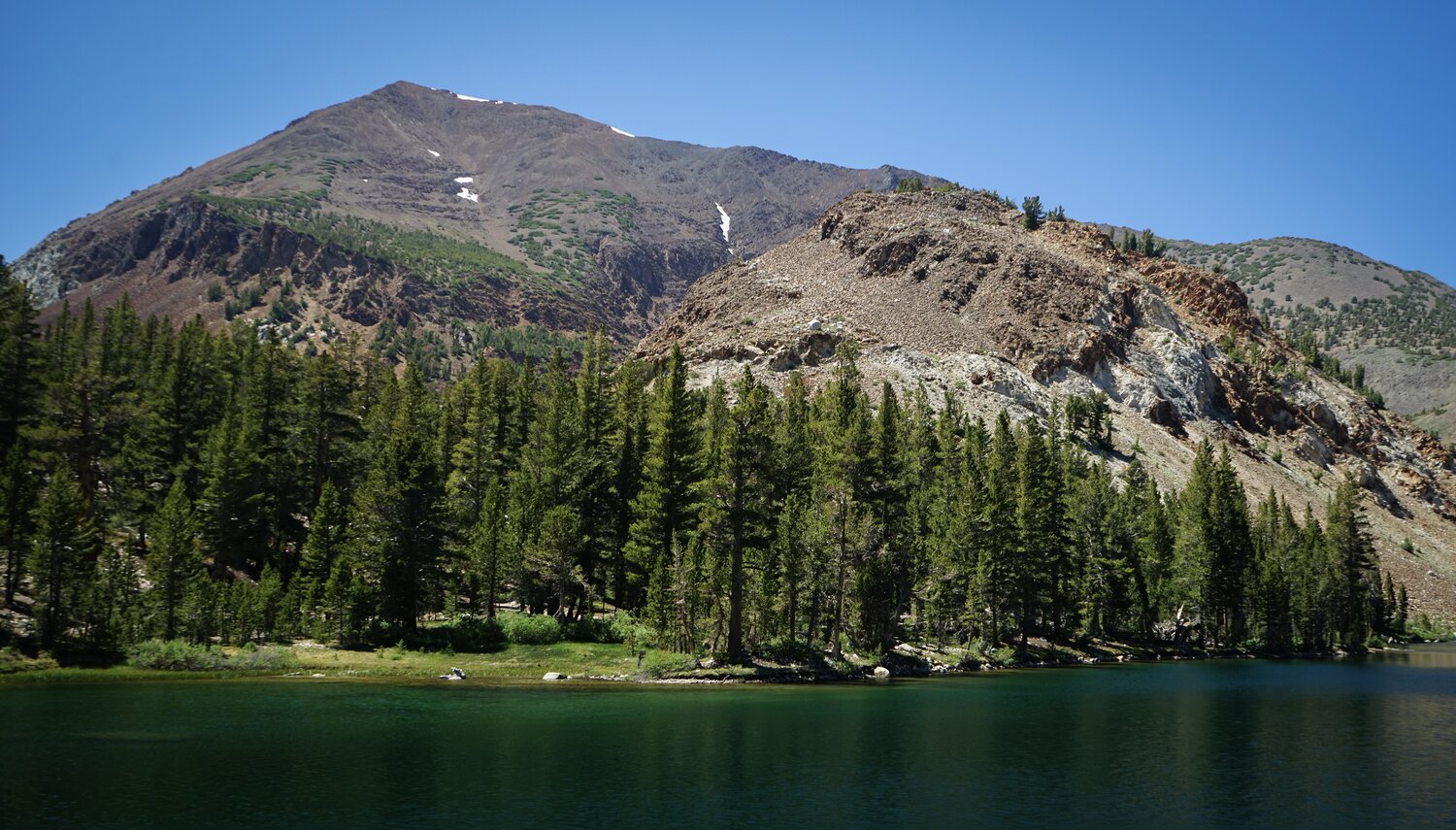 Bloody Mountain above Lake Genevieve. I stopped for a snack and to soak my feet in the lake. It was quite a beautiful spot with no people, no bugs, warm sunshine, and cool alpine lake water.