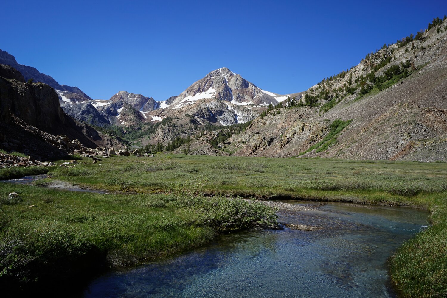 Convict Creek flowing down towards the popular lake below.