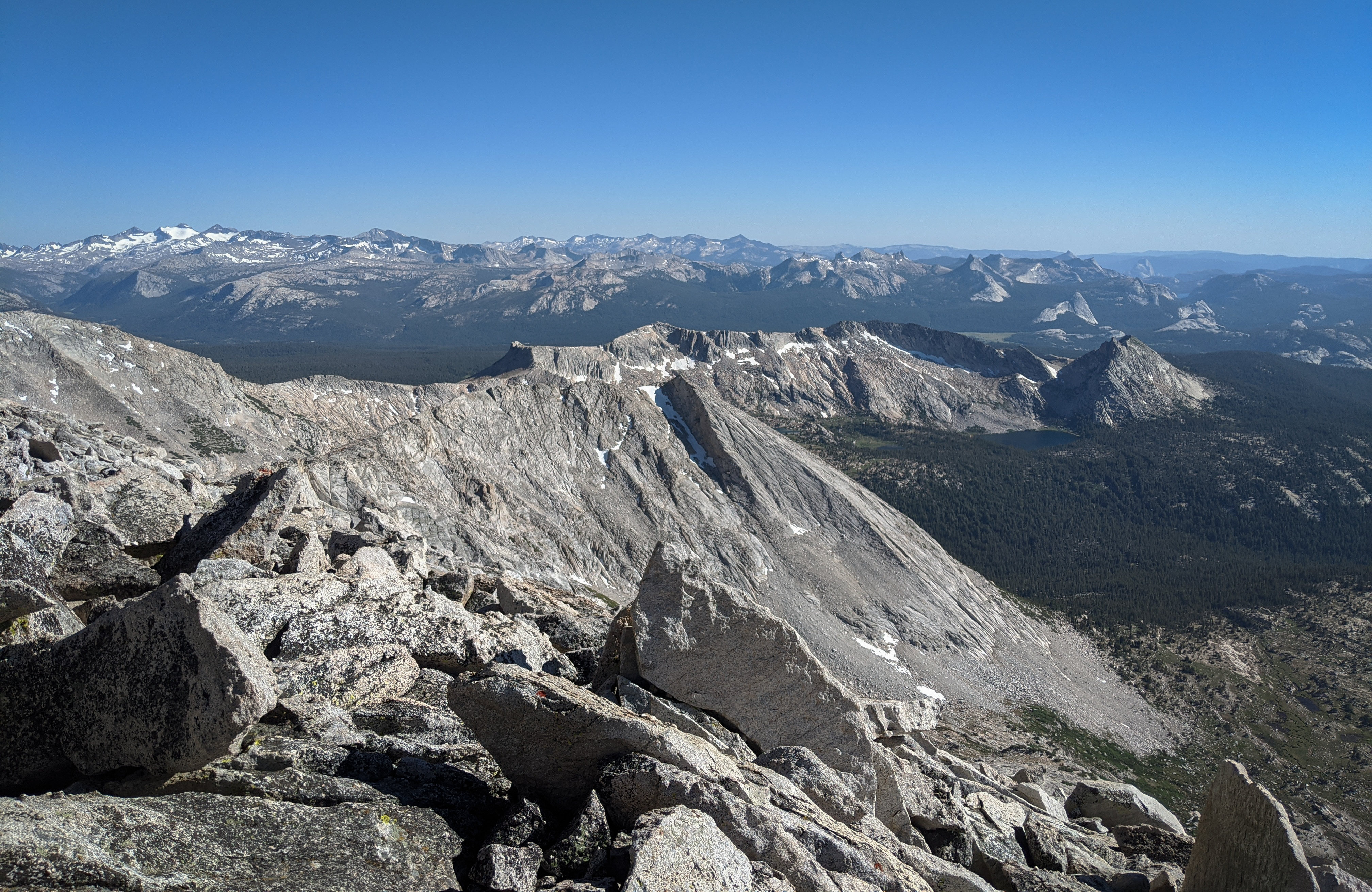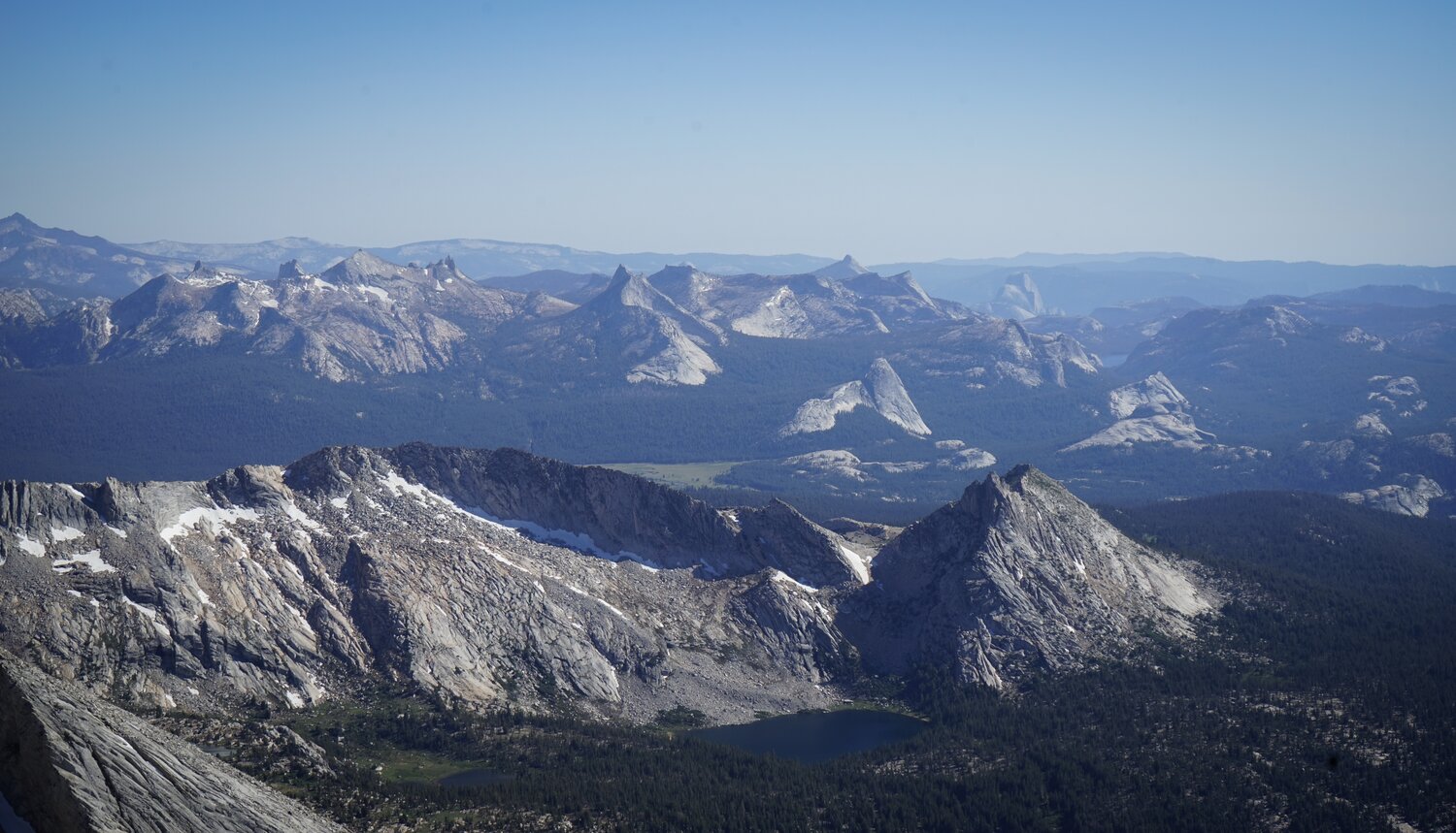 From the summit, we had a wonderful view of Tuolumne Meadows, the Cathedral Range, and even Half Dome!