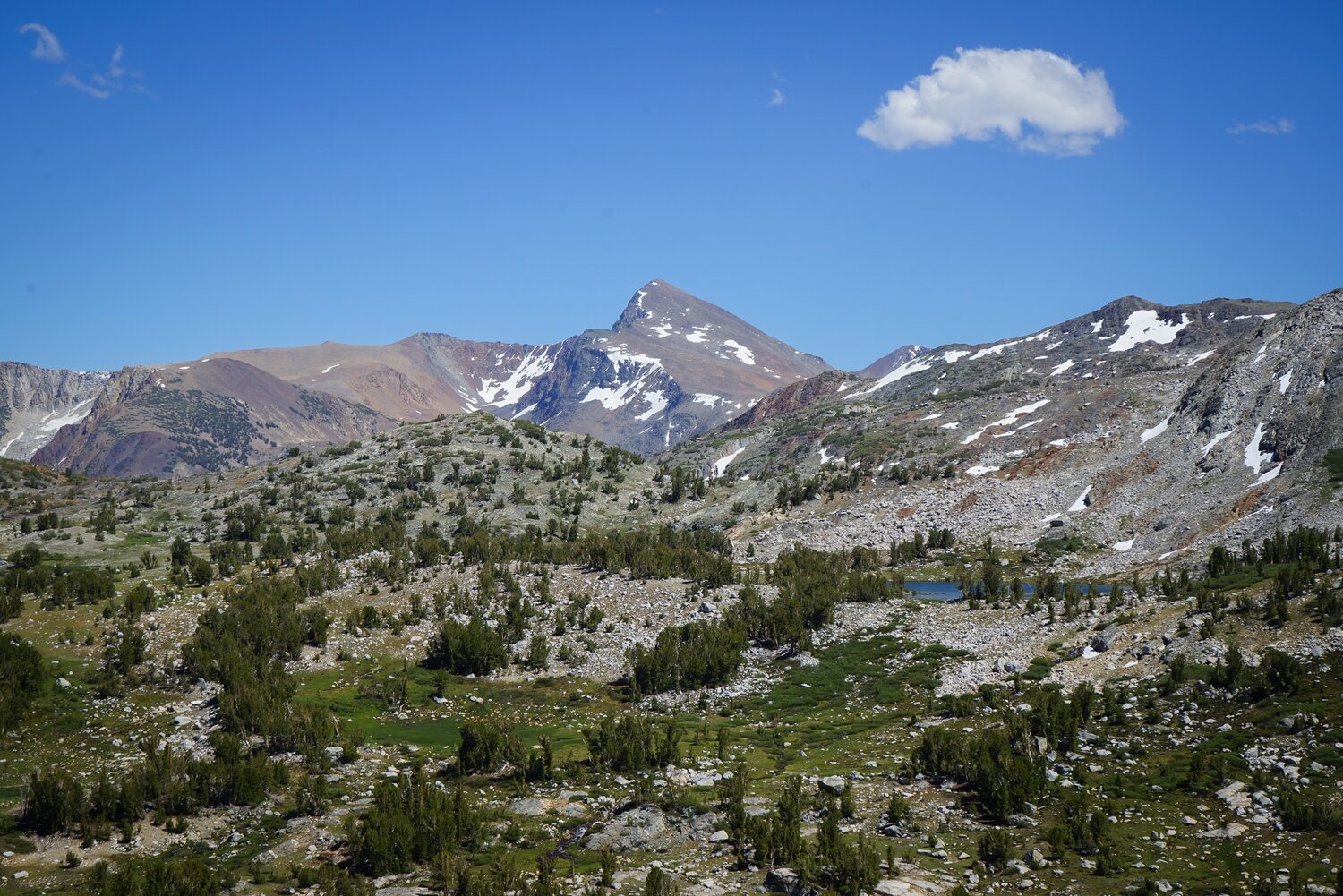 The northern Conness Lakes are a lovely milky blue, fed by sediment from the Conness Glacier.