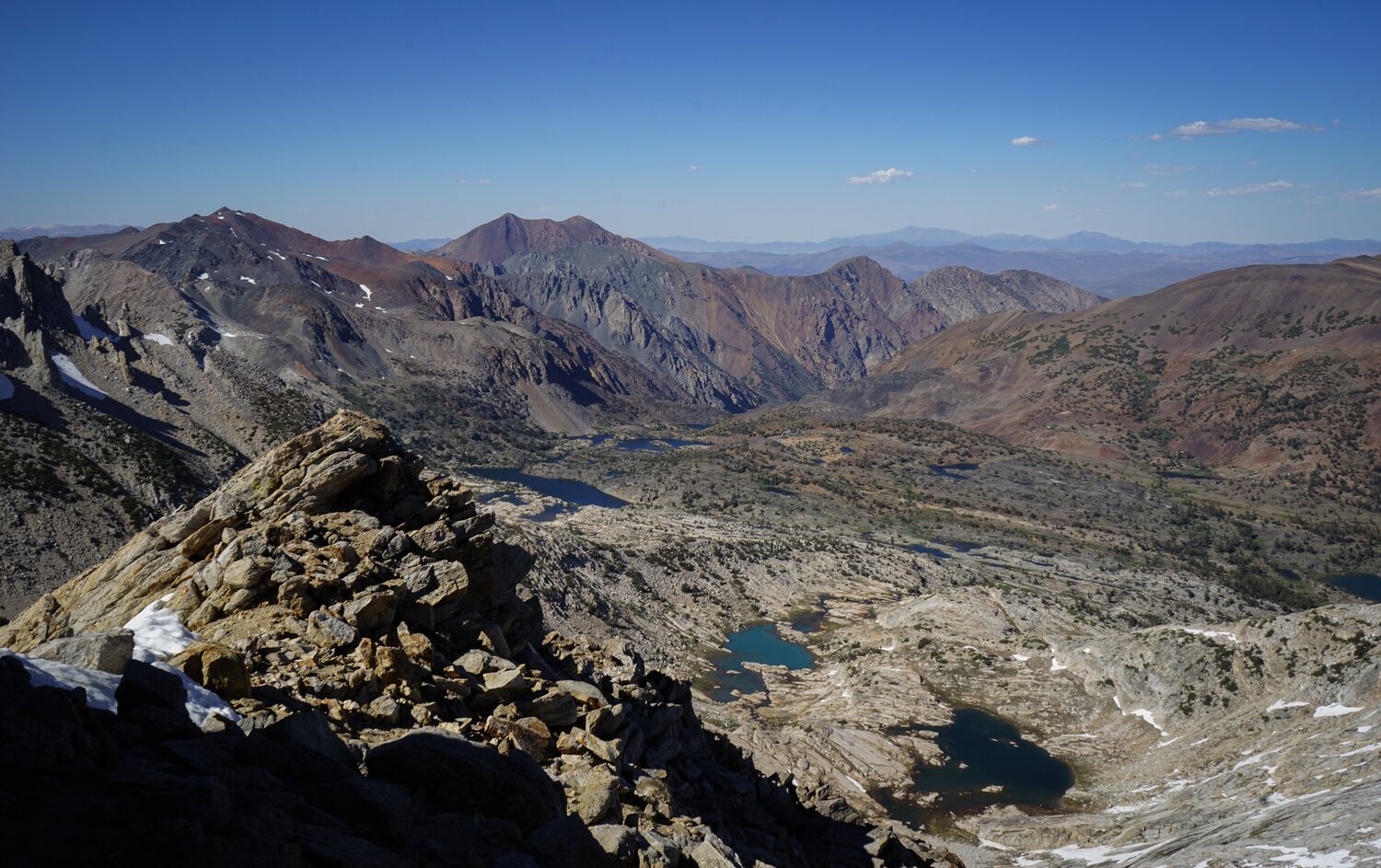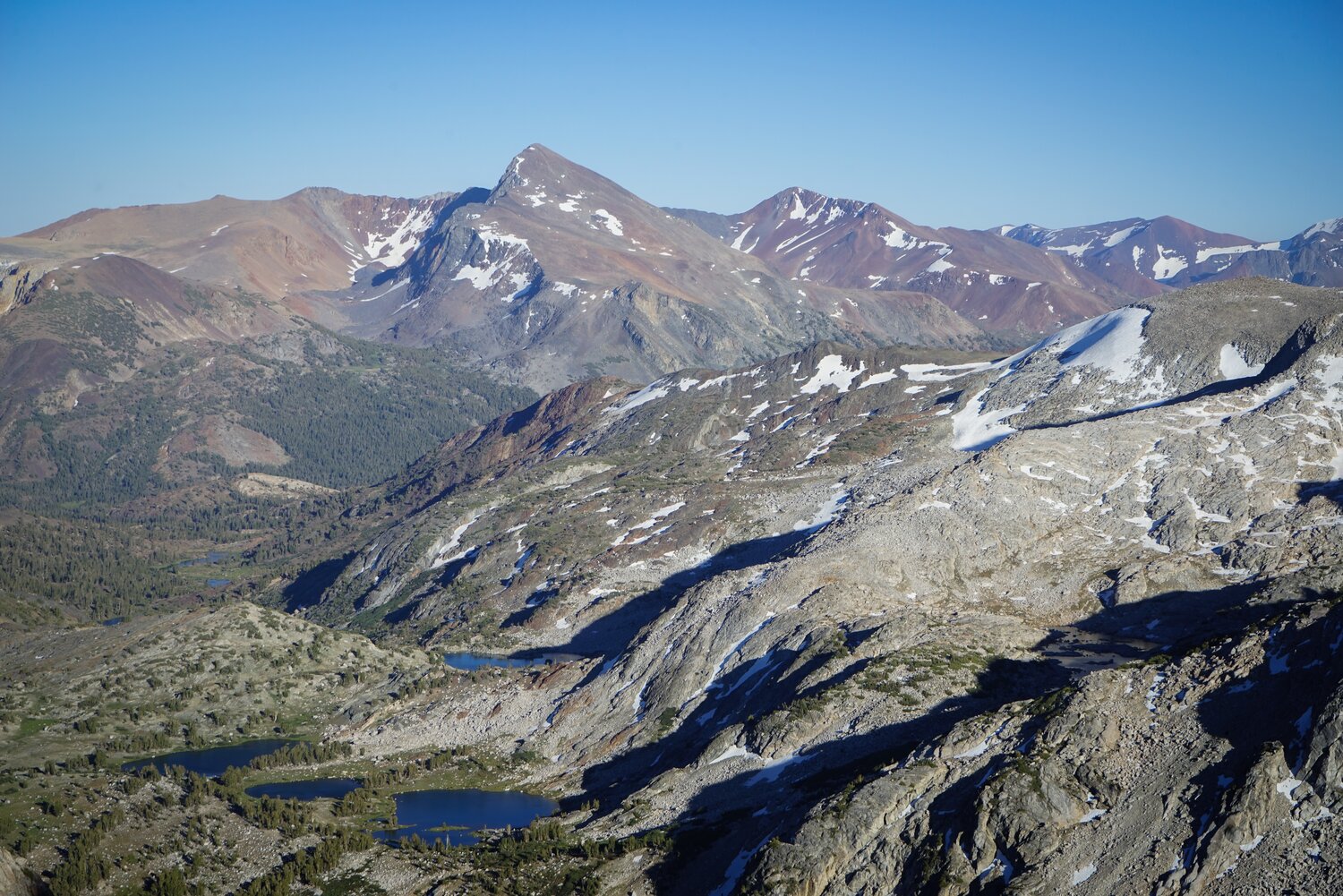 Looking north over the Conness Lakes and some other lakes in the Twenty Lakes Basin.