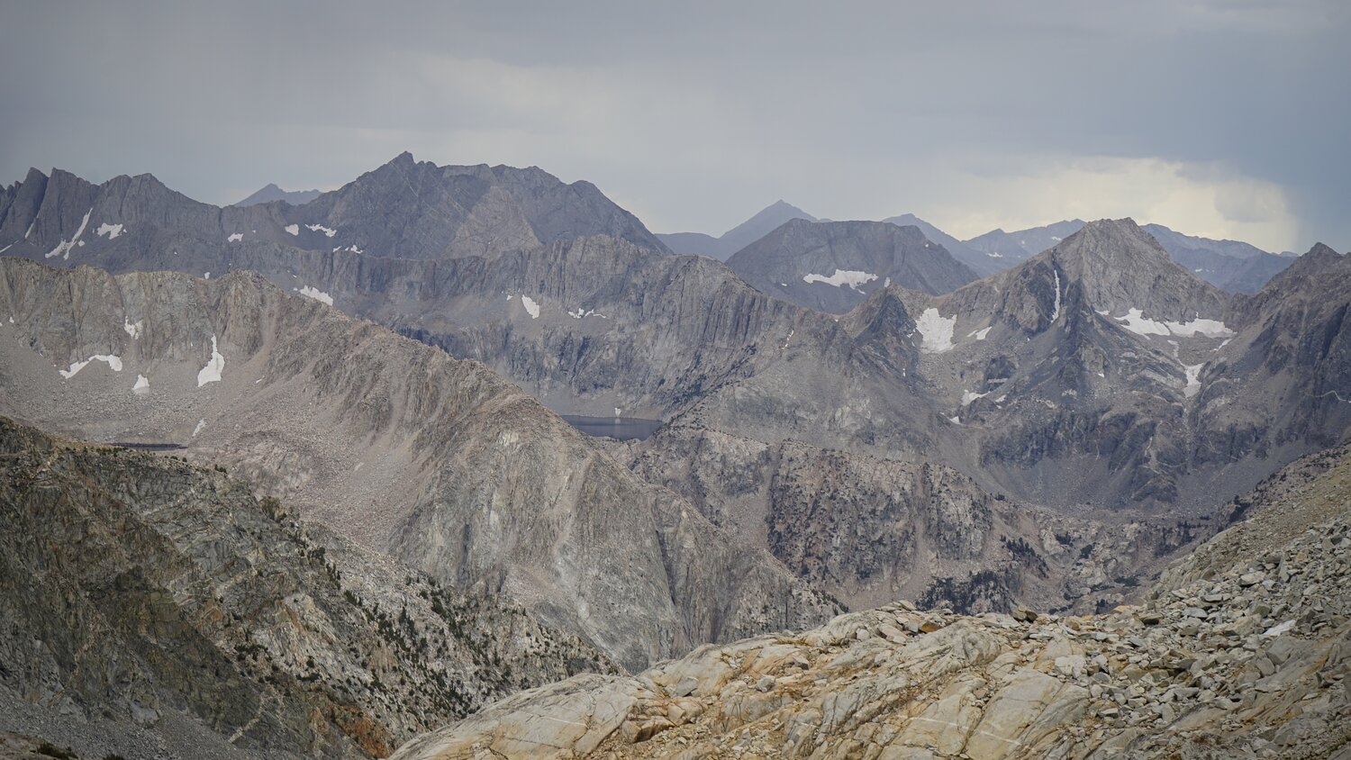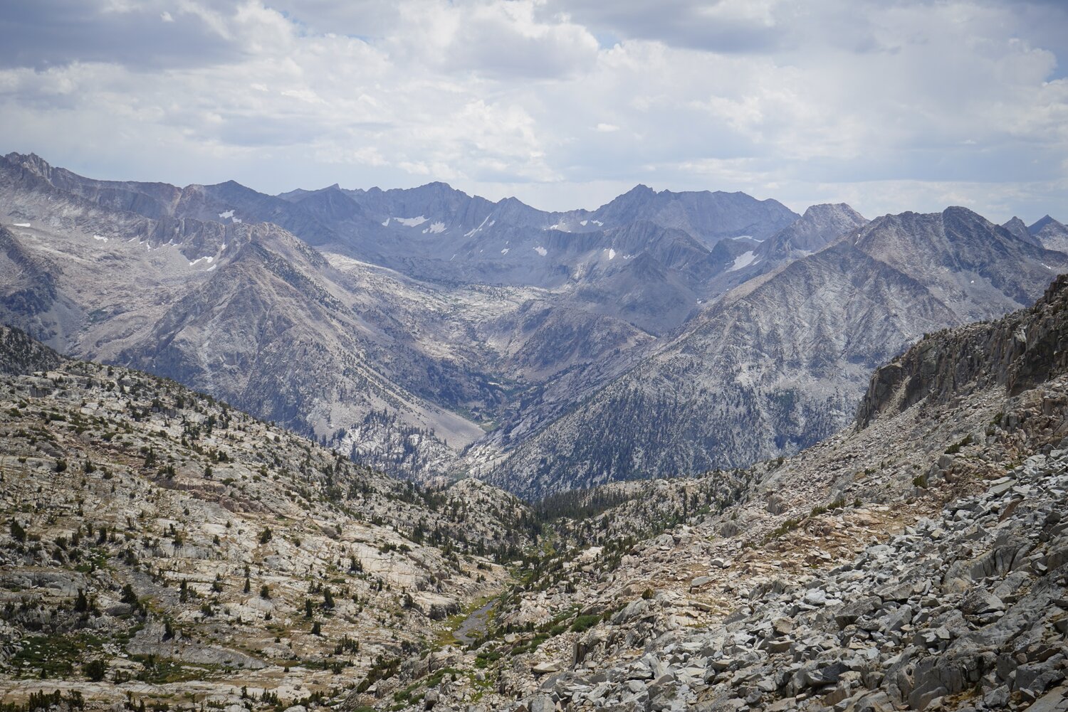 The view north to the Black Divide and Evolution Range from Knapsack Pass.