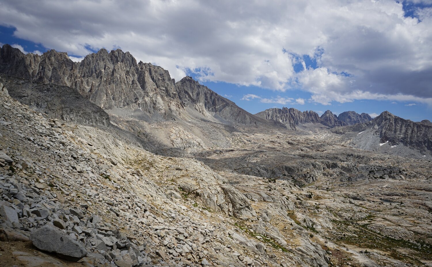 The Palisades above Barrett Lakes, with Potluck Pass pictured below Palisade Crest at right.