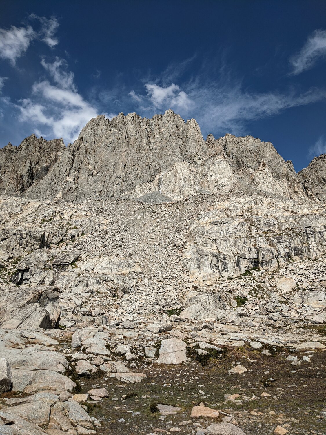 A shot directly up at North Palisade, now only 2,000 vertical feet above us.