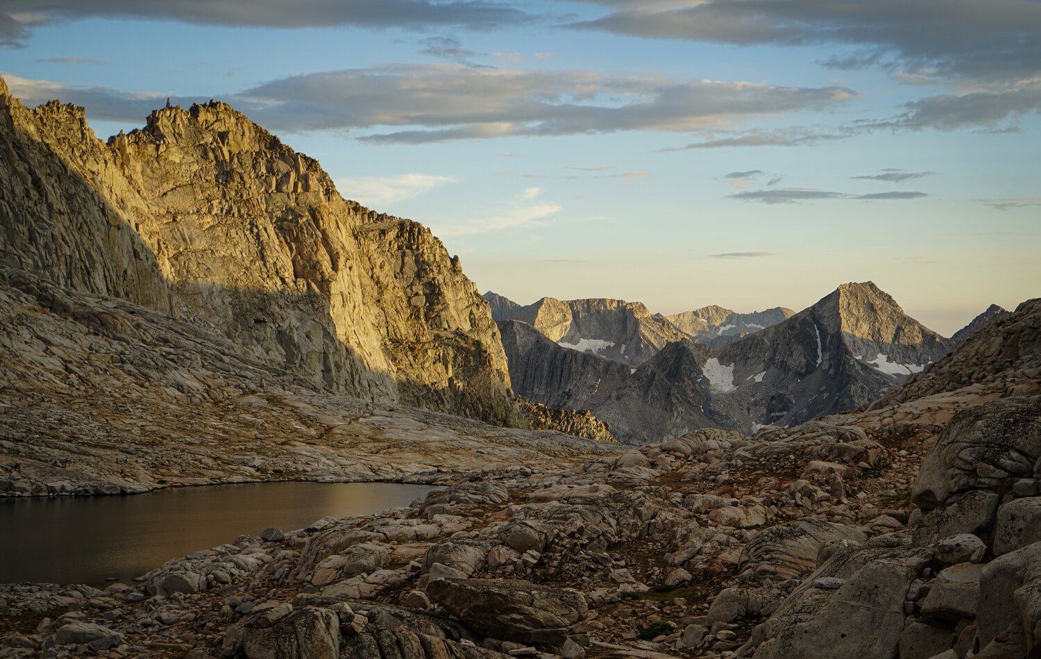 Alpenglow on Palisade Crest above the Glacier Creek Lakes.