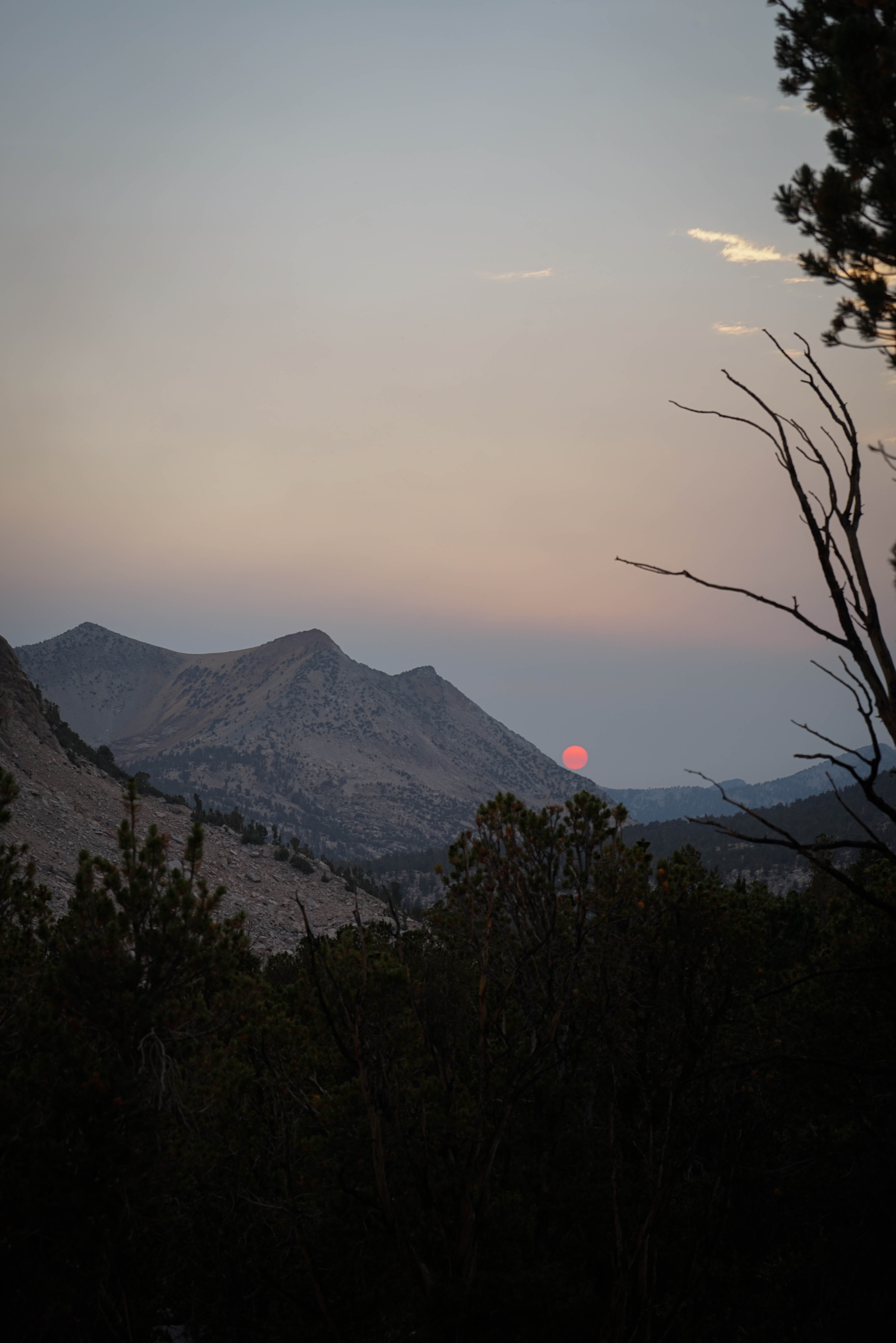 We climbed up to the highpoint near the lake for sunset and saw that it was quite hazy to our west. We were able to stare directly at the sun, which appeared dark red on the horizon. Maybe we should have taken this as a warning of what was to come.