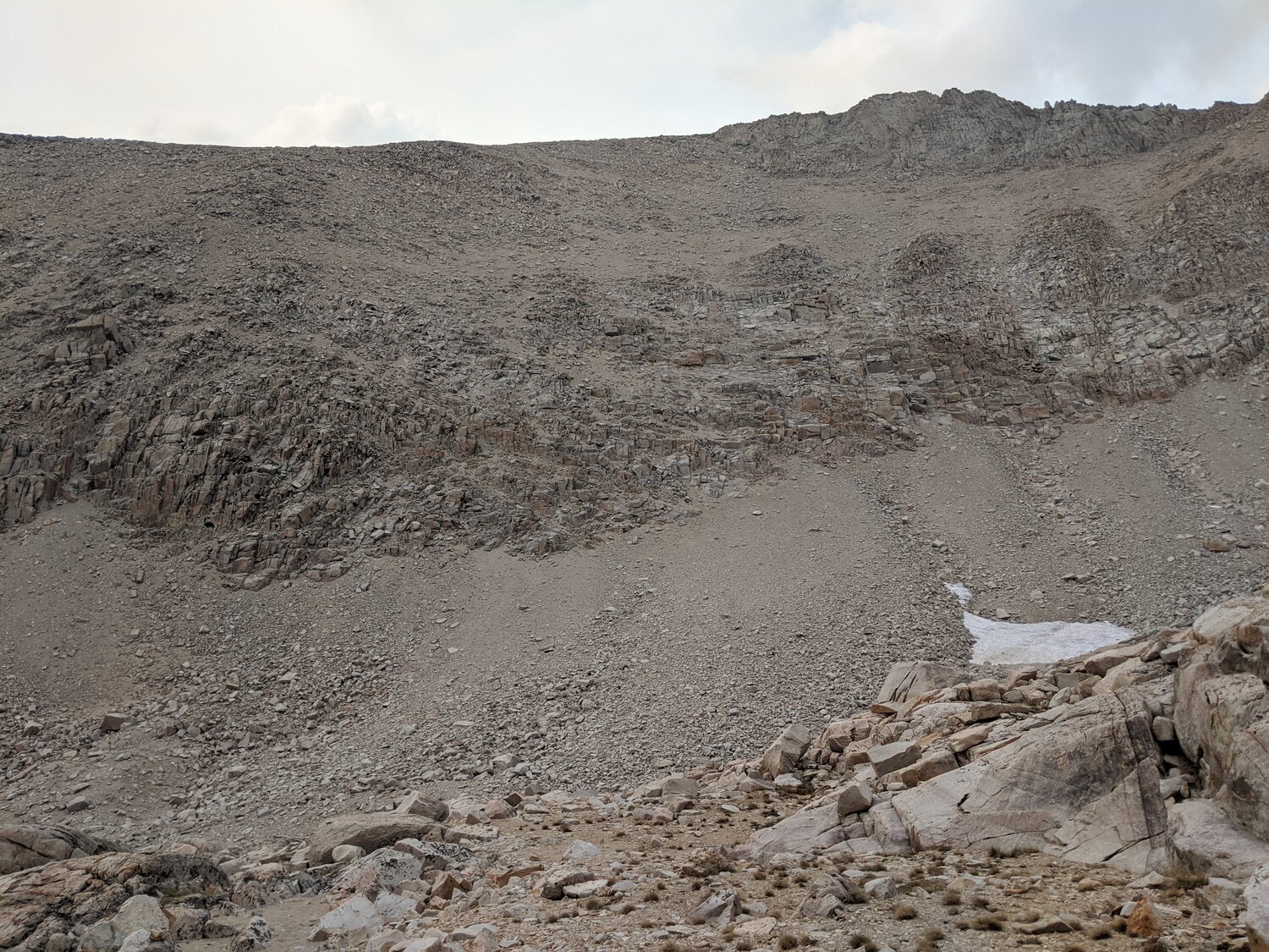 Another view of Mount Muir’s summit from the west. When we got back to the trail, we came across a couple of guys in running shoes, shorts, and singlets who were debating a sidetrip up Mount Muir. We encouraged them to give it a try.
