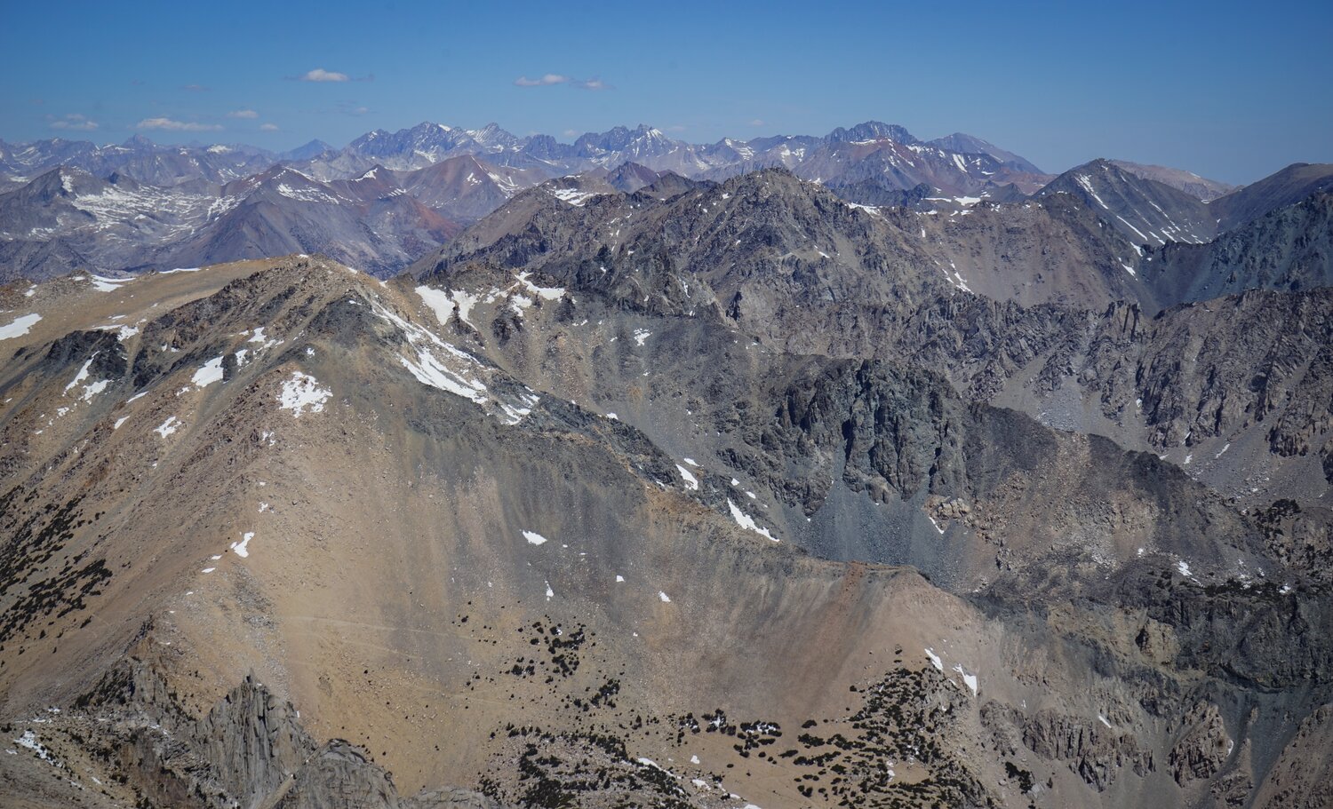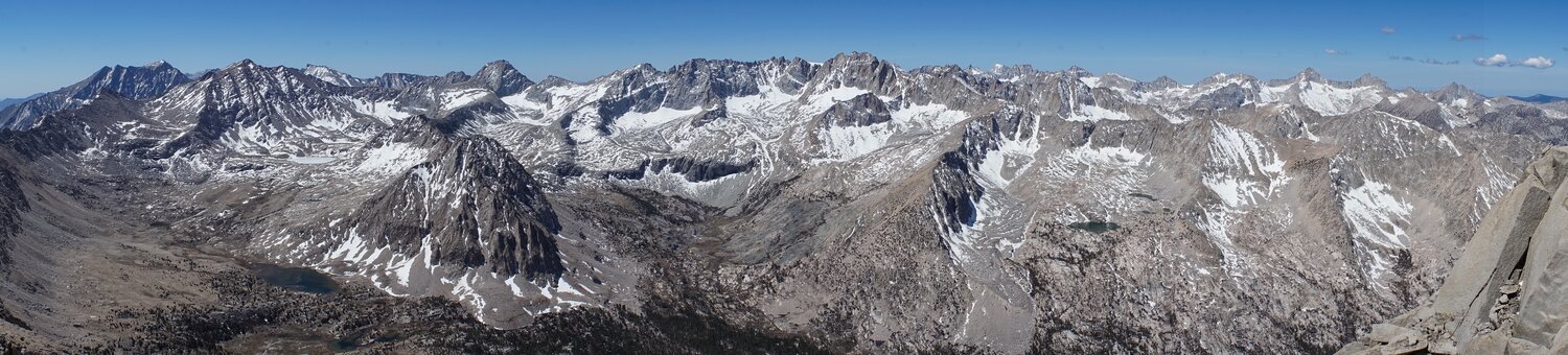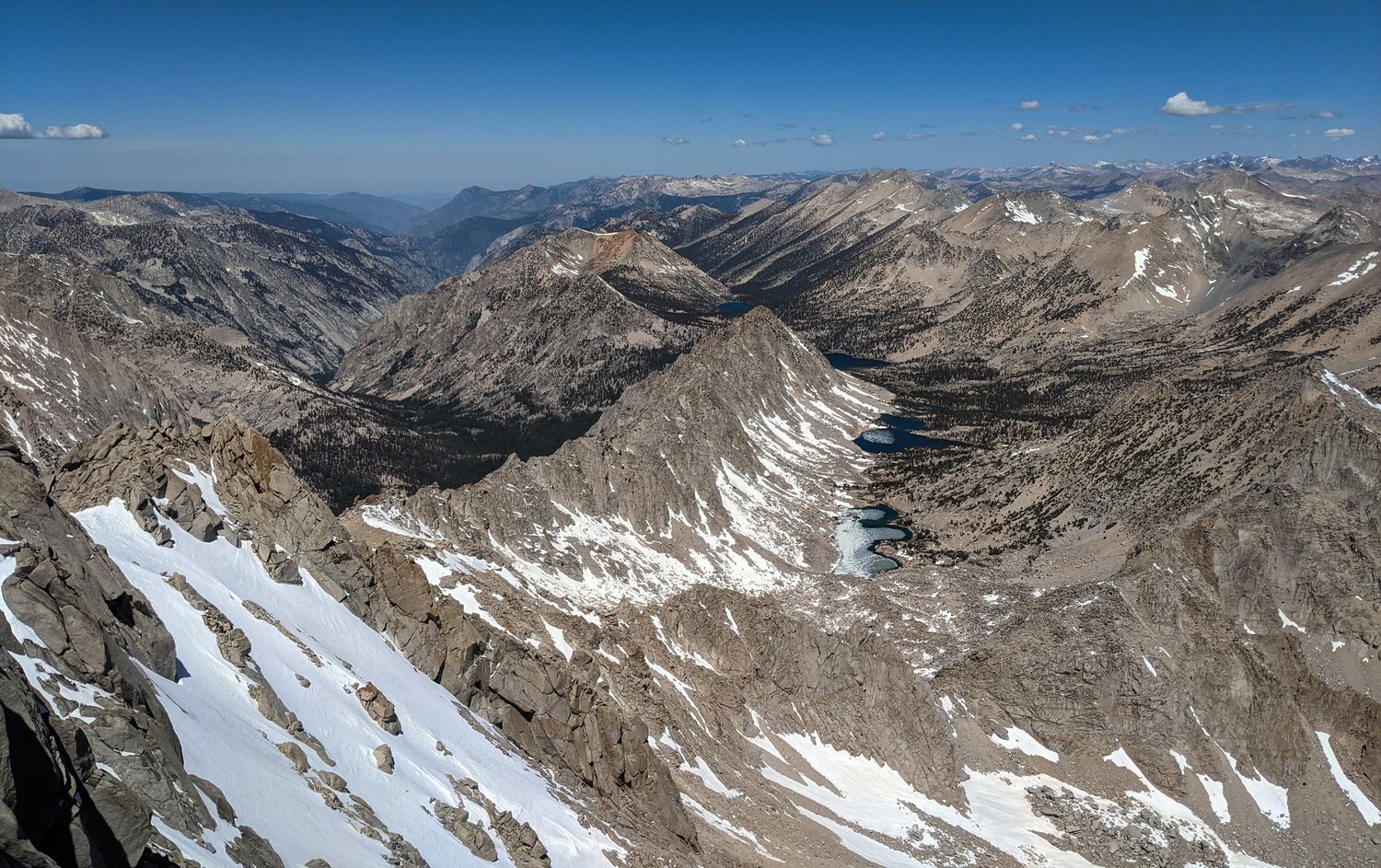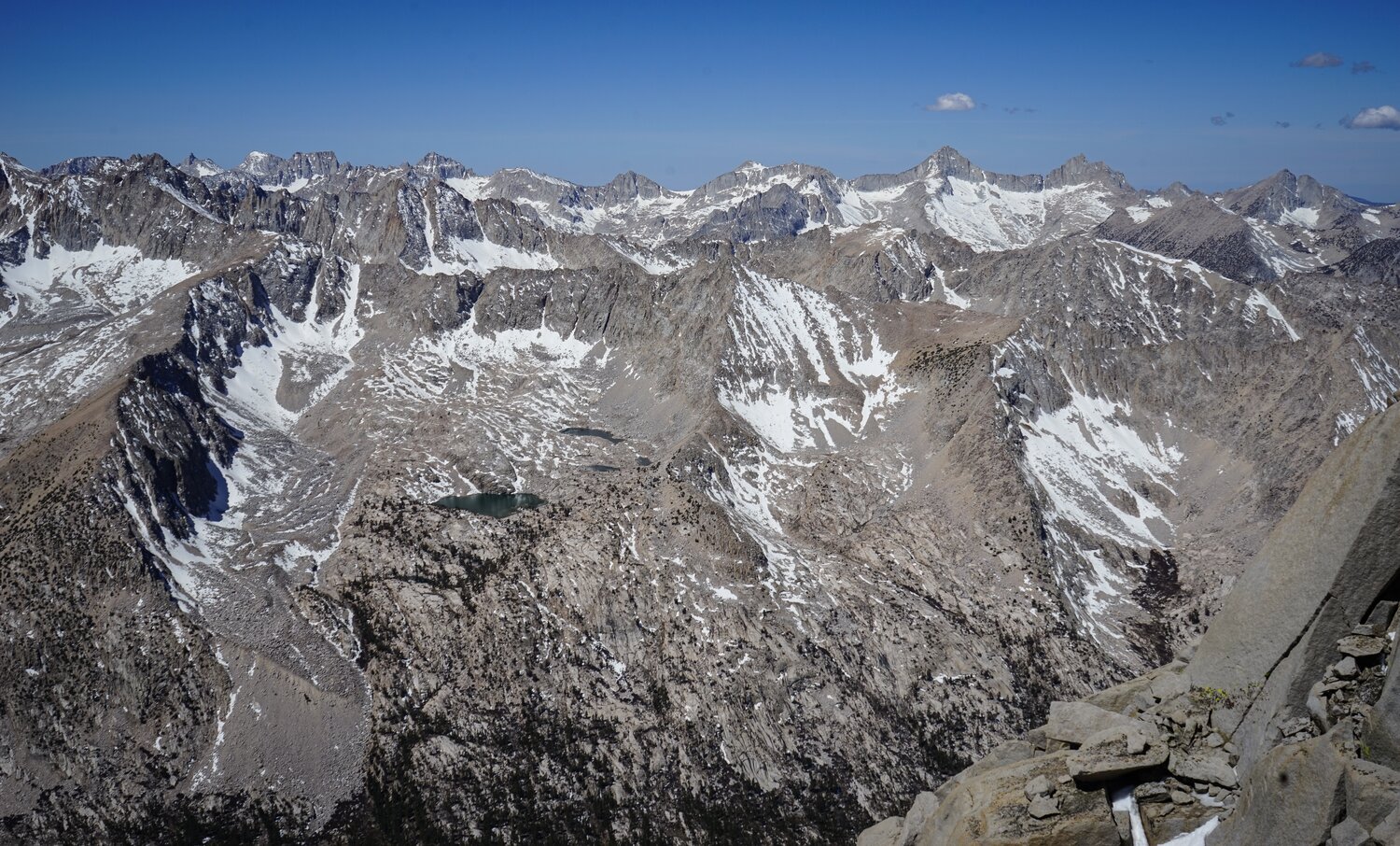 To the south, the Kings-Kern Divide and a snowy Forester Pass dominated the view.