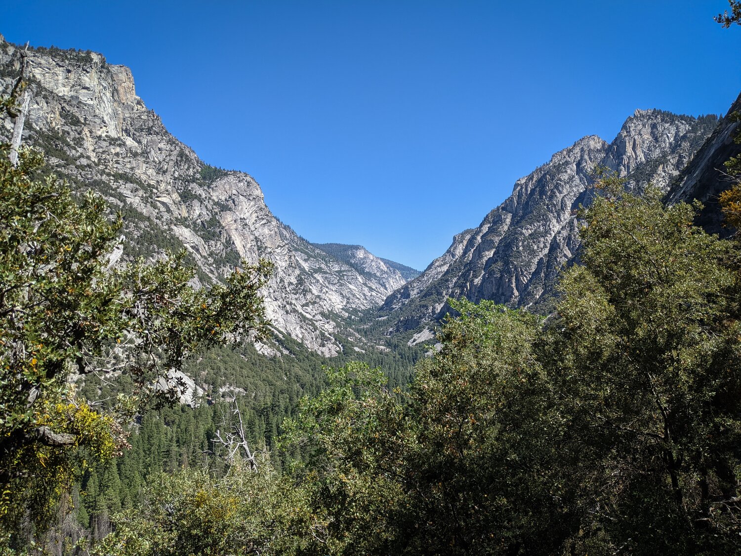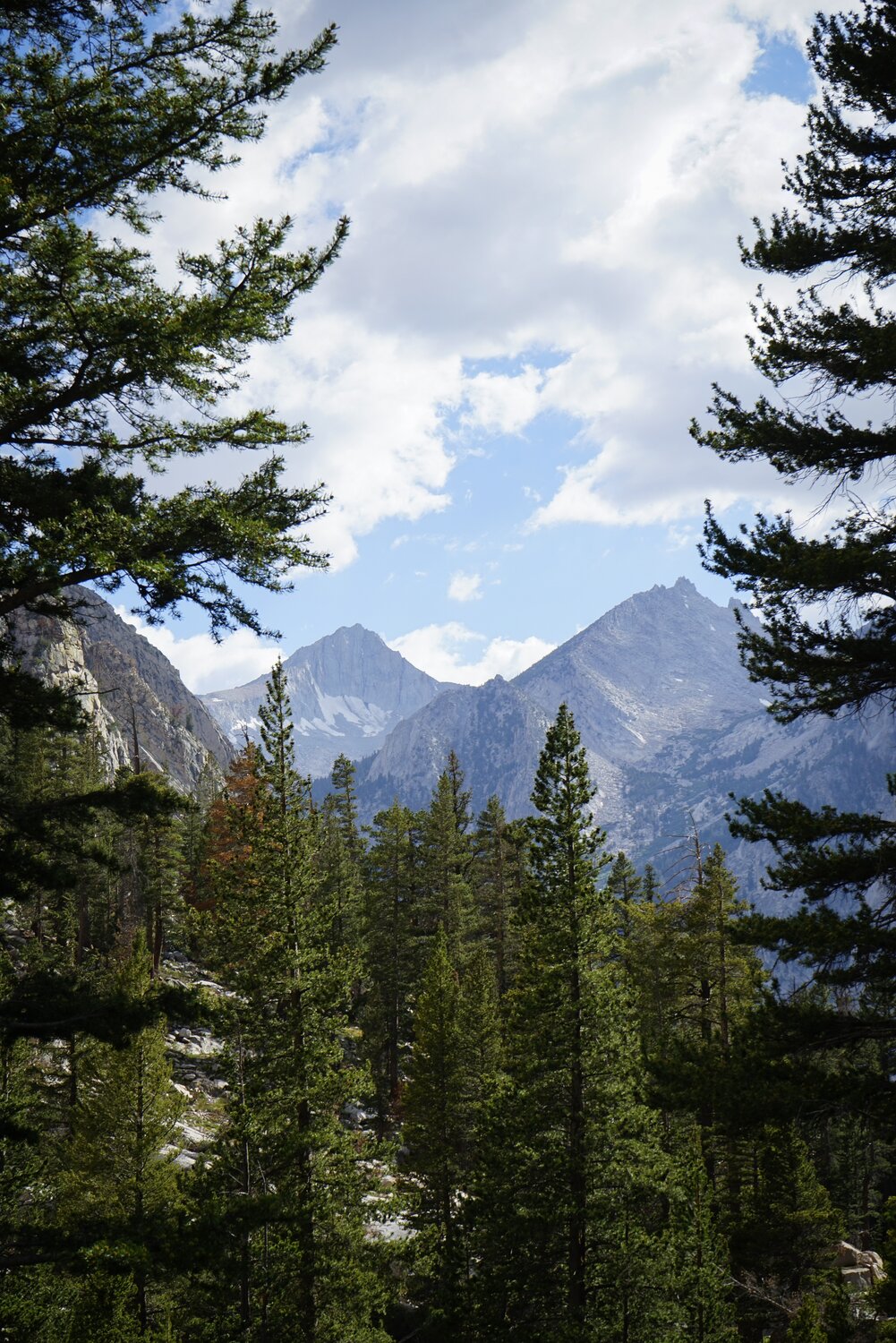 Looking up the Kings River towards Paradise Valley from the first climb up Bubbs Creek. We passed a family of four coming down who warned us of a bear causing trouble at Charlotte Creek. Apparently the bear had kept them up all night as it tried to break into their bear canister. We weren’t sure exactly how far we’d get today but noted that maybe that wasn’t the best stopping point for the day.