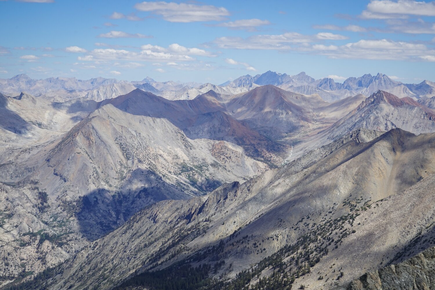 From the talus sidewalk there were incredible views in all directions. Looking north, the Palisades and the Evolution Group loomed on the horizon, and the White Fork (of Woods Creek) was easily visible.