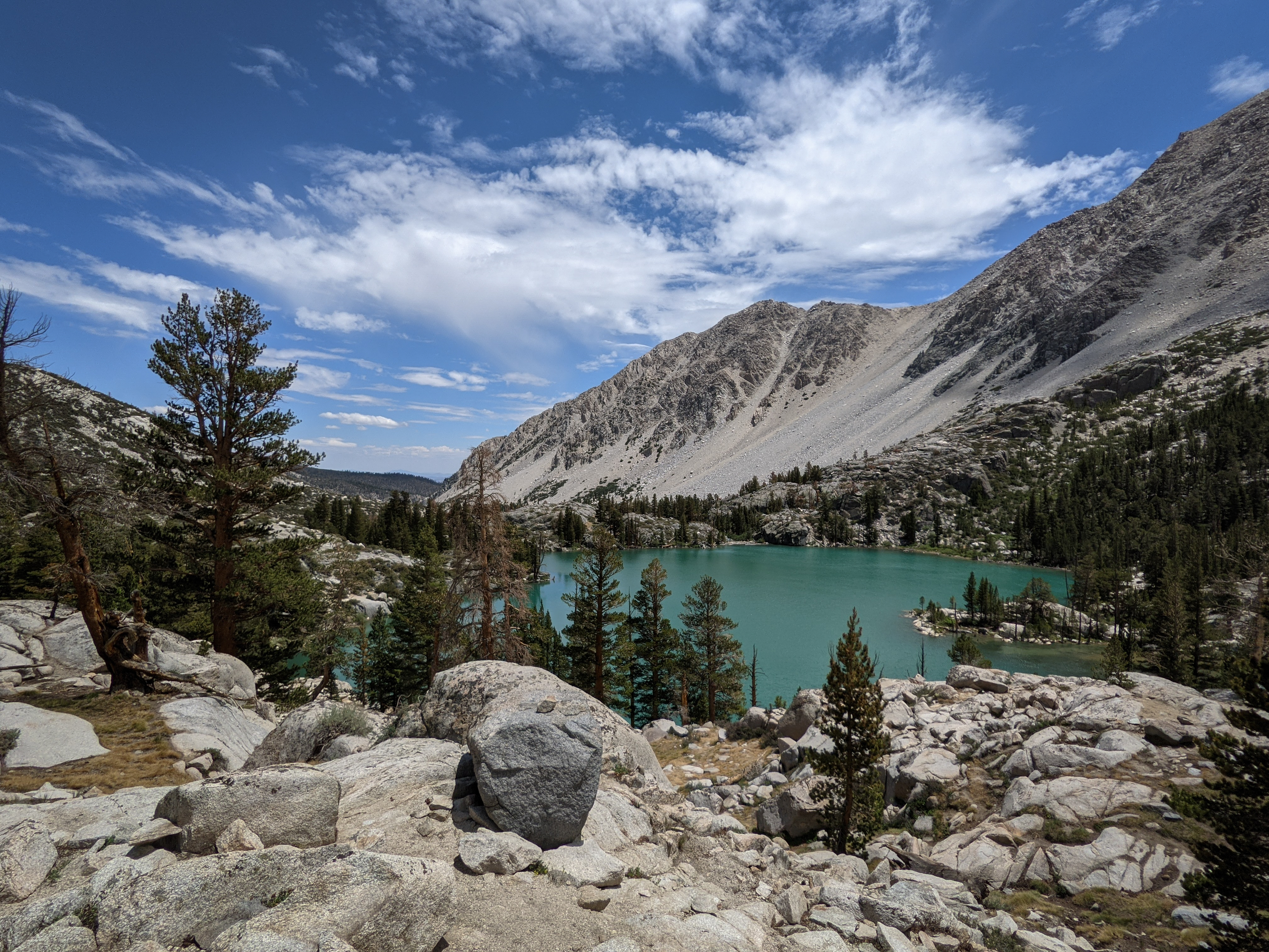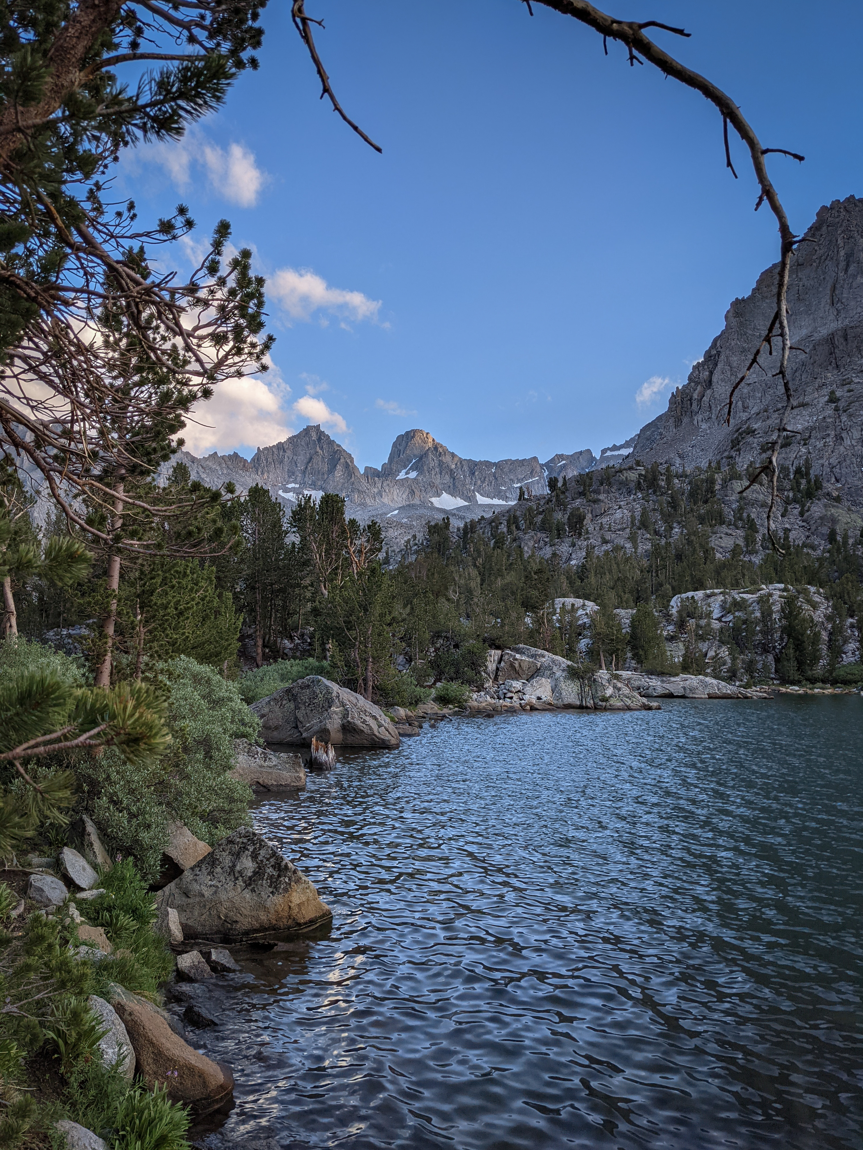 The Instagram-famous viewpoint from Second Lake. There were a couple of parties set up in heavily impacted sites just a few feet off the trail here, and a group playing around in pool floaties down near the shore. We continued on, planning to get to at least Third Lake.
