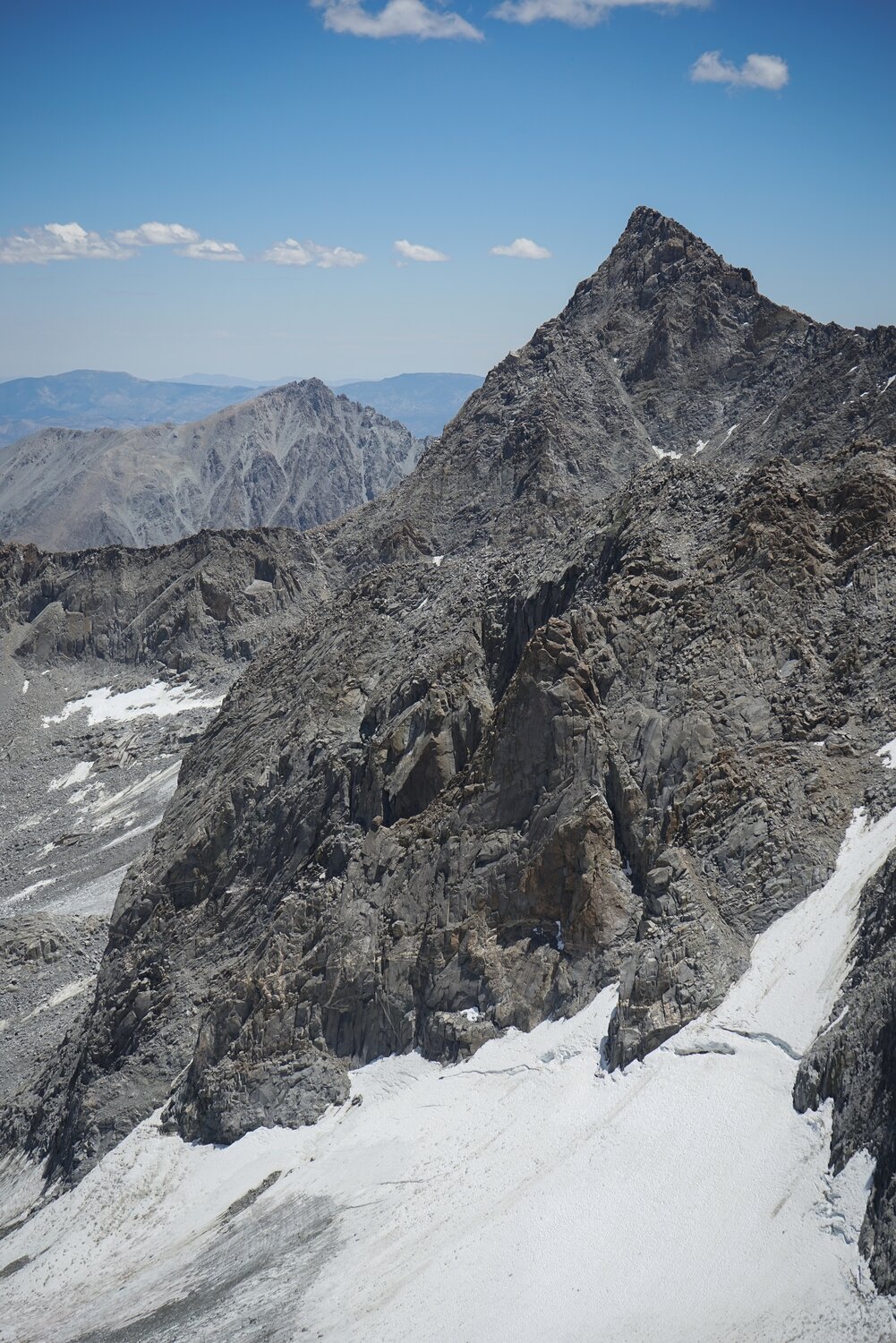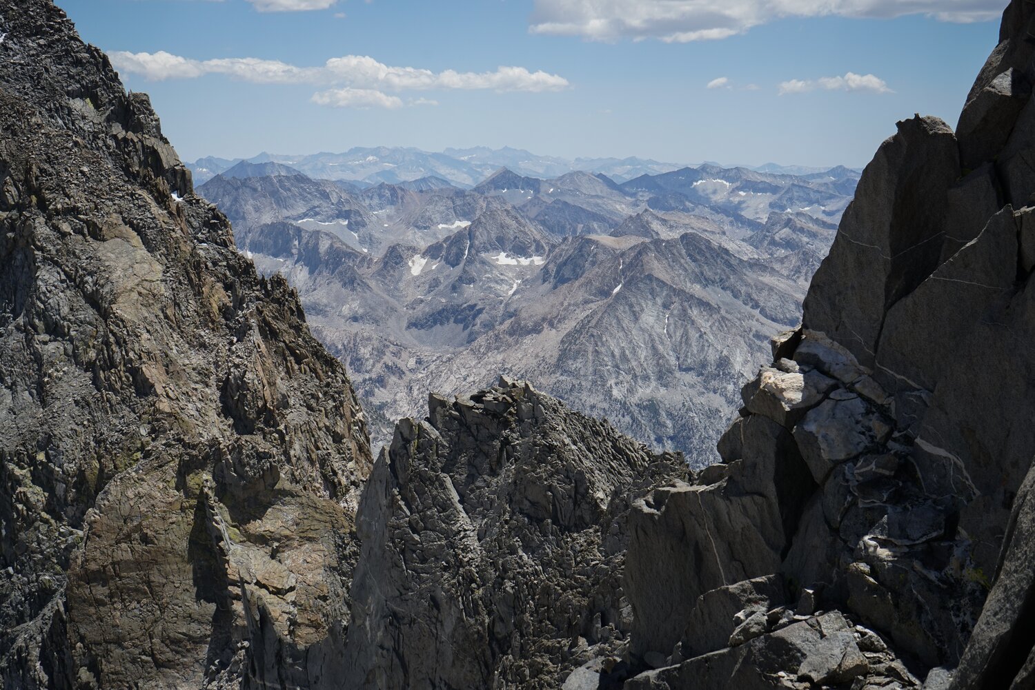 Looking through the notch between Mount Winchell and Thunderbolt Peak.